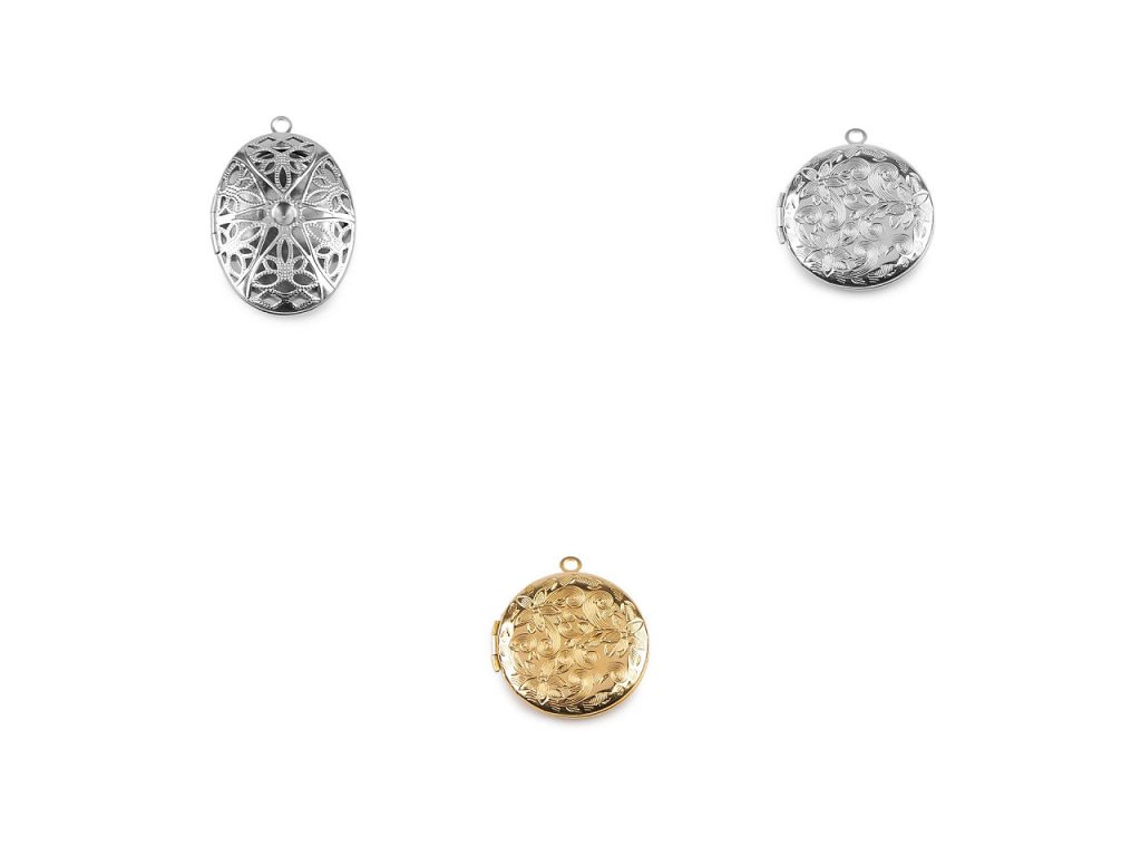 Medailonek rozevírací oválný, kulatý zdobený z nerezové oceli