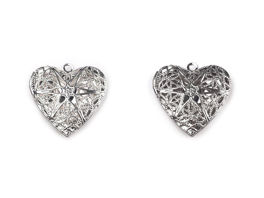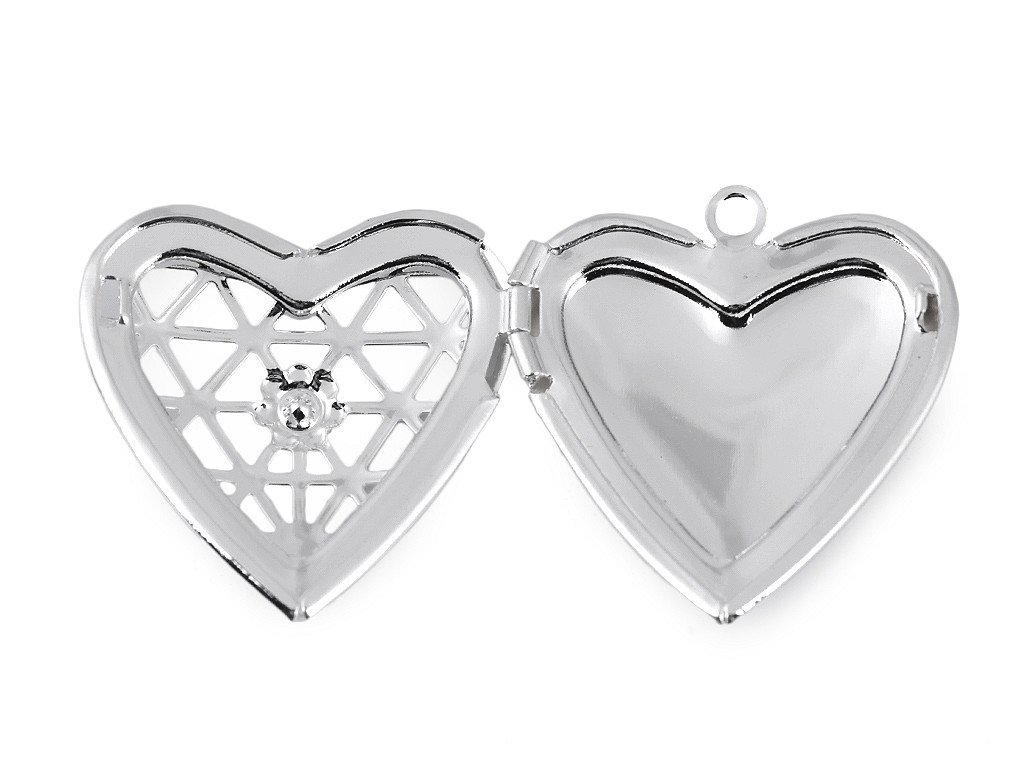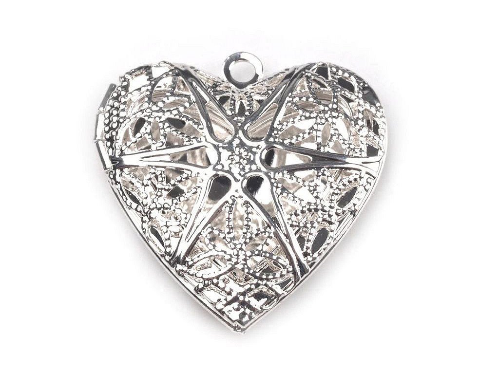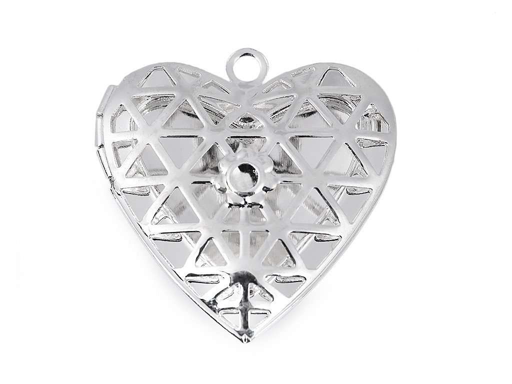Máte rádi medailónky, protože vám umožňují nosit fotografie vašich blízkých neustále u sebe? Pak si pořiďte tento medailón ve tvaru srdce o velikosti 26 x 26 mm. Můžete si do něj umístit jeden obrázek, který uvidíte přes mřížkování. Medailóny jsou vyrobeny z kvalitního kovu a jsou k dostání ve dvou barvách – světle stříbrná a platinová.- Rozměry přívěsku: 2,6 x 2,6 cm