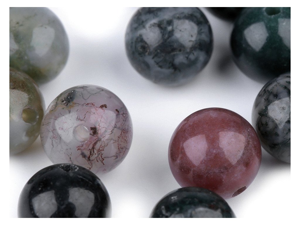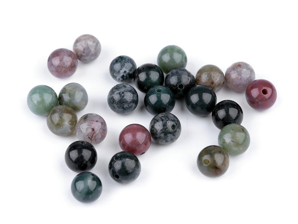 Minerální korálky z indiánského achátu jsou oblíbené především šperkaři pro svou zajímavou kresbu a barvu. Svou velikostí jsou ideální na výrobu Buddhových náramků. Jsou oblíbené na techniku drátování, v kombinaci s drahými kovy, ale i s obyčejnými drátky. Skvěle vypadají i na jednoduchých návlekových šňůrách , které zajímavě ozvláštní.- Průměr: 8 mm