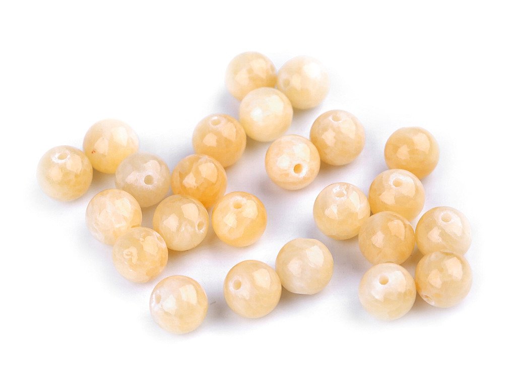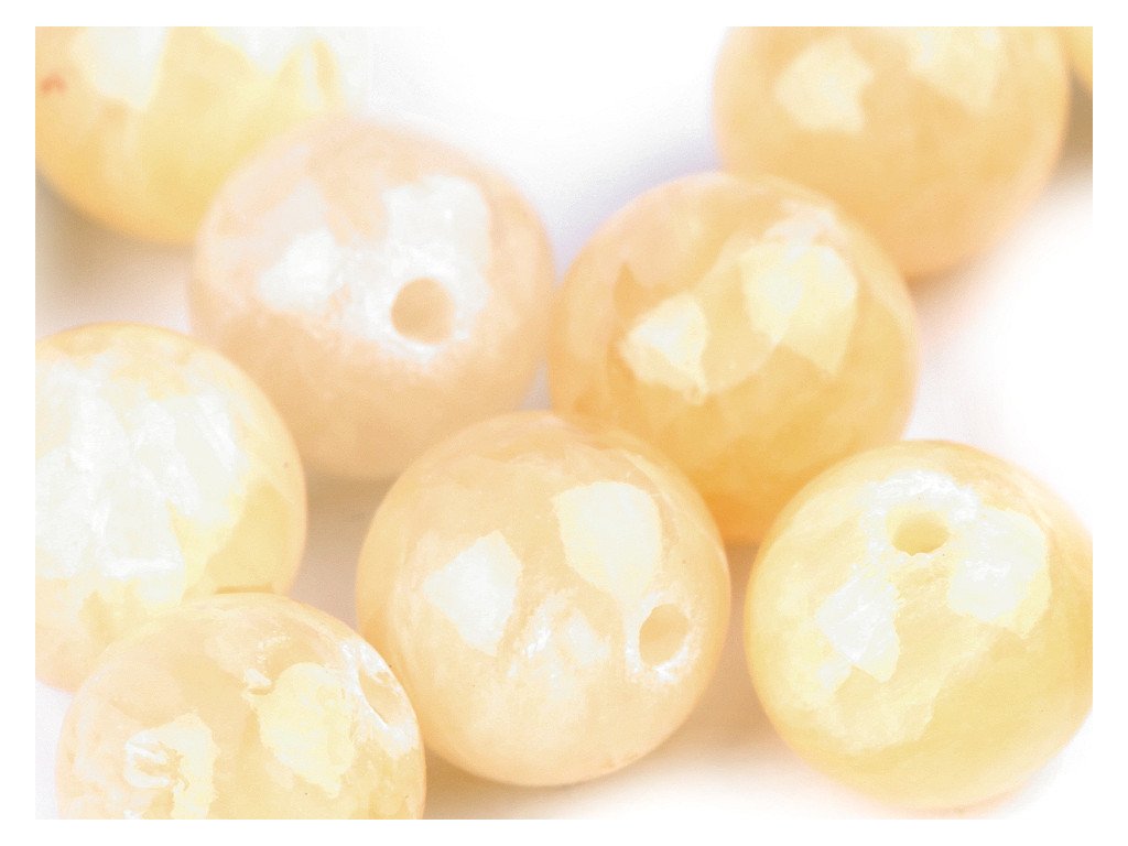 Minerální korálky ze žlutého jadeitu jsou jedinečné svou poloprůsvitnou strukturou s jemnou barvou. Svou velikostí jsou ideální na výrobu Buddhových náramků a jiných šperků. Jsou oblíbené na techniku drátování, v kombinaci s drahými kovy, ale i s obyčejnými drátky. Skvěle vypadají i na jednoduchých návlekových šňůrách, které zajímavě ozvláštní.- Průměr: 8 mm