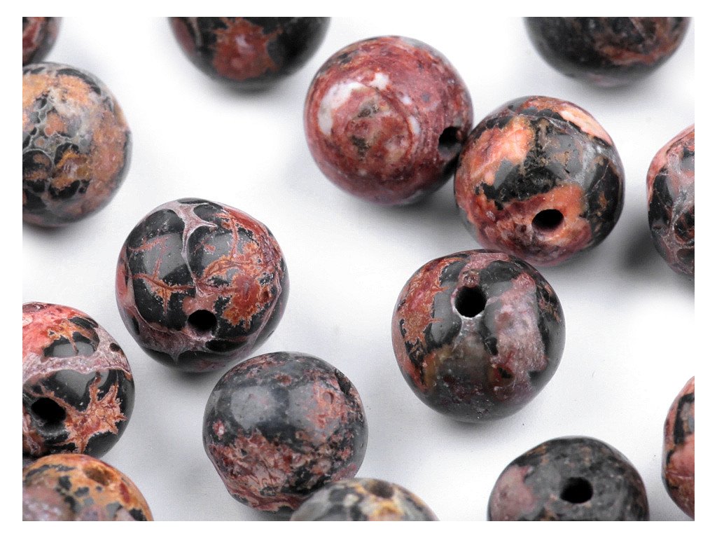 Minerální korálky z leopardího jaspisu jsou oblíbené především šperkaři pro svou nádhernou kresbou. Velikostí jsou ideální na výrobu jemnějších Buddhových náramků. Jsou oblíbené na techniku drátování, v kombinaci s drahými kovy, ale i s obyčejnými drátky. Skvěle vypadají i na jednoduchých návlekových šňůrách, které zajímavě ozvláštní.- Průměr: 6 mm