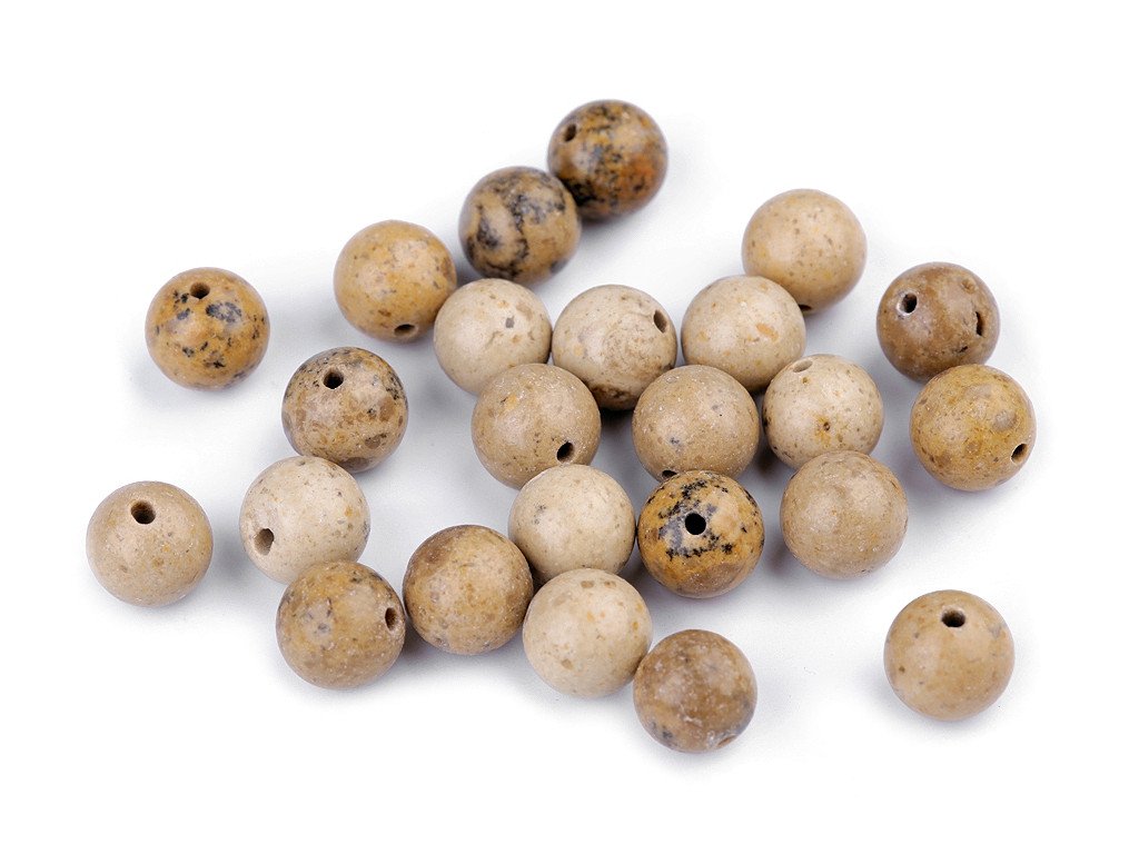 Minerální korálky z pískového jaspisu jsou oblíbené především šperkaři pro své zemité barvy s nádhernou kresbou. Svou velikostí jsou ideální na výrobu Buddhových náramků. Jsou oblíbené na techniku drátování, v kombinaci s drahými kovy, ale i s obyčejnými drátky. Skvěle vypadají i na jednoduchých návlekových šňůrách, které zajímavě ozvláštní.- Průměr: 8 mm