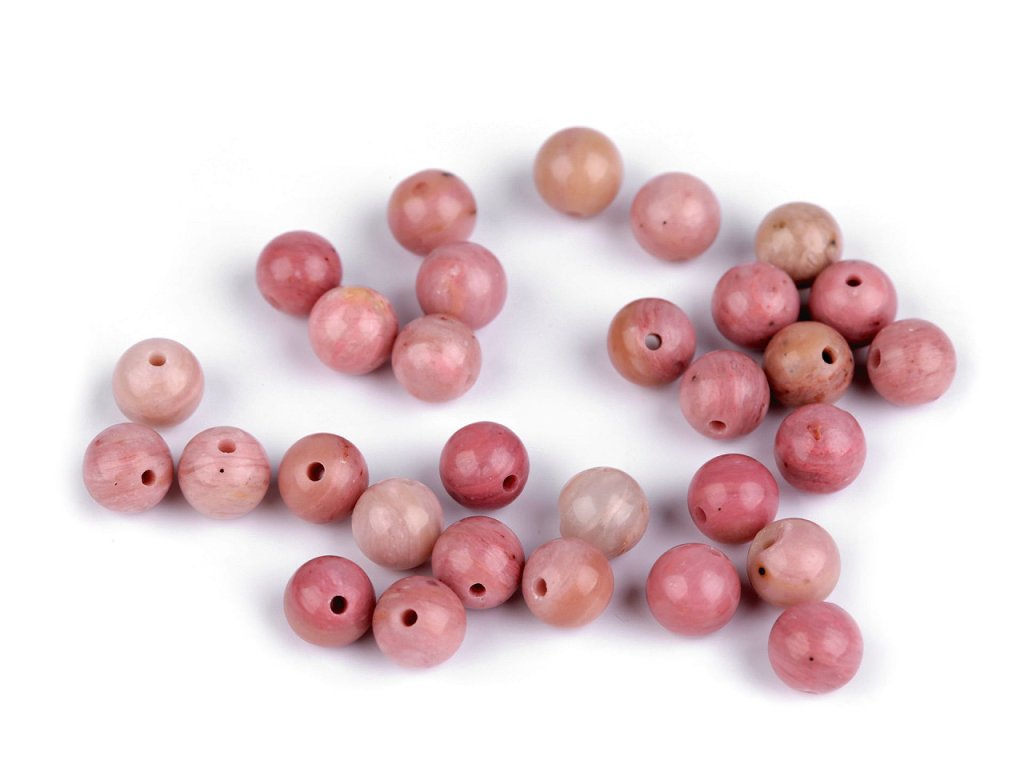Minerální korálky z rodonitu jsou oblíbené především šperkaři pro svou jedinečnou kresbu a barvy. Svou velikostí jsou ideální na výrobu jemnějších Buddhových náramků. Jsou oblíbené na techniku drátování, v kombinaci s drahými kovy, ale i s obyčejnými drátky. Skvěle vypadají i na jednoduchých návlekových šňůrách, které zajímavě ozvláštní.- Průměr: 6 mm
