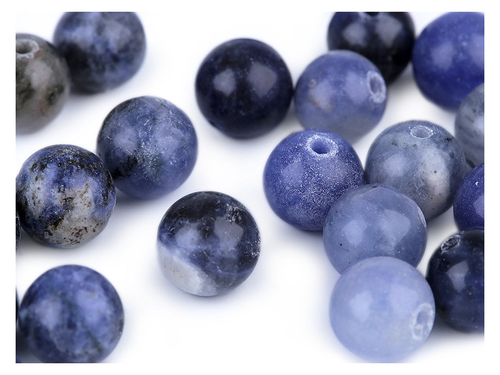 Minerální korálky ze sodalitu jsou oblíbené především šperkaři pro svou krásnou barvu a kresbu. Svou velikostí jsou ideální na výrobu Buddhových náramků. Jsou oblíbené na techniku drátování, v kombinaci s drahými kovy, ale i s obyčejnými drátky. Skvěle vypadají i na jednoduchých návlekových šňůrách, které zajímavě ozvláštní.- Průměr: 8 mm