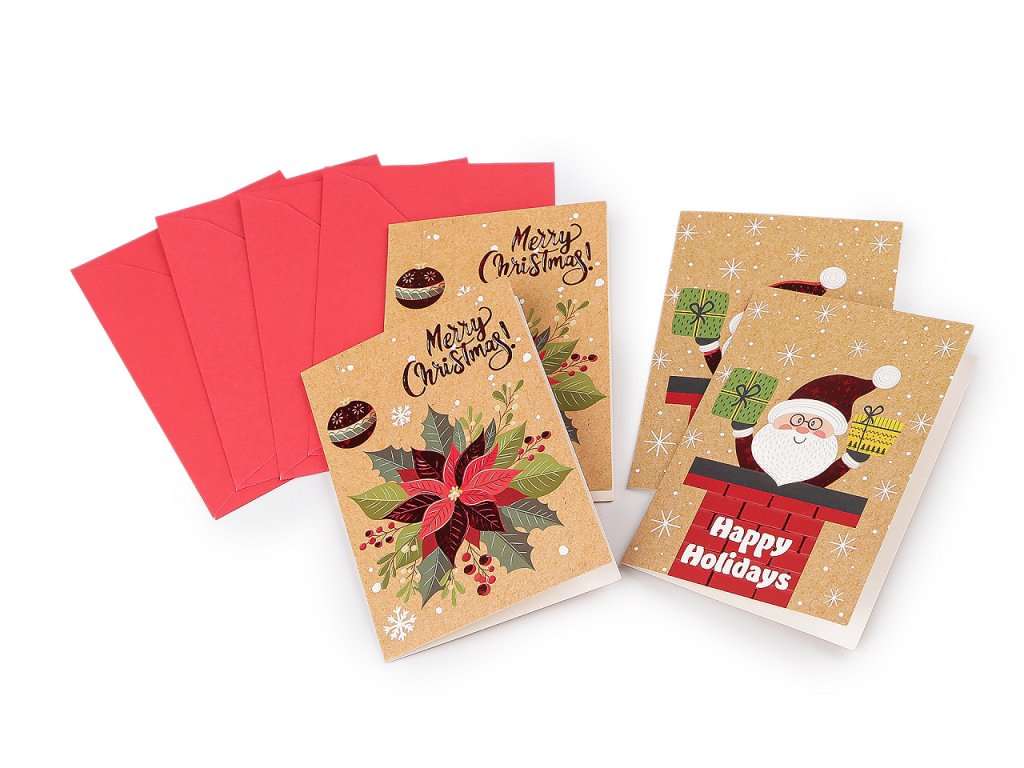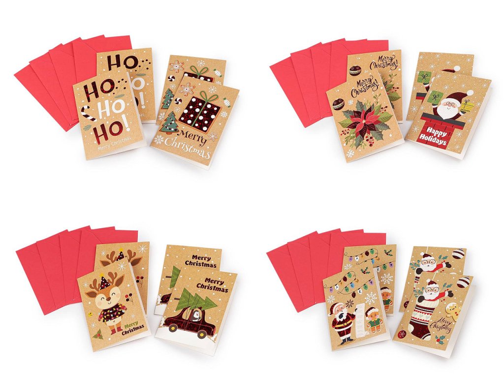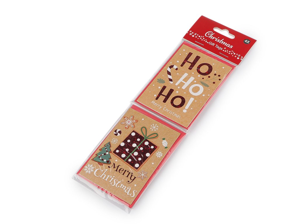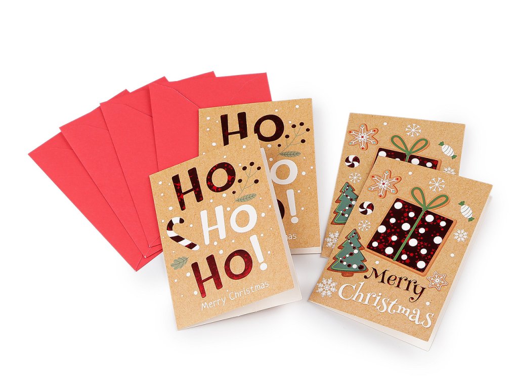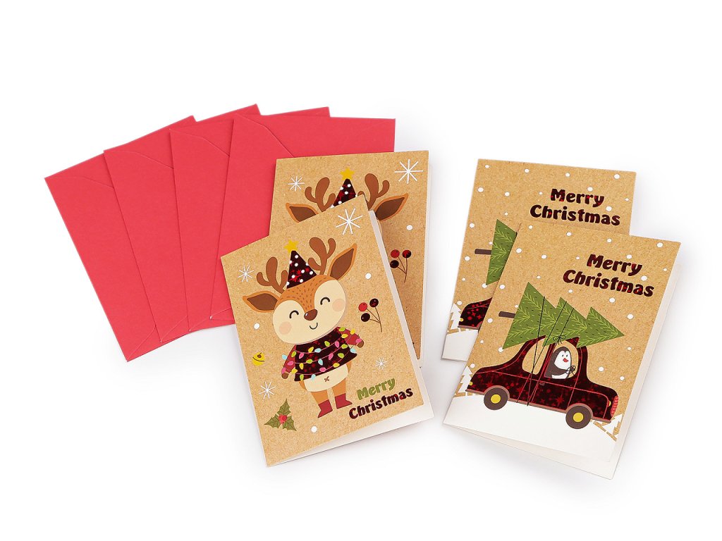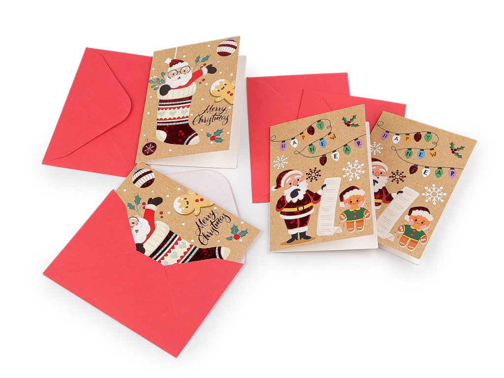 Set mini vánočních přání s obálkami je ideální volbou pro ty, kteří chtějí obdarovat své blízké osobním vzkazem. Design přání je veselý, s tradičními vánočními motivy. Potisk je v detailech doplněný metalickou fólií, ve které se pod určitým úhlem třpytí hvězdičky. Přání je rozevírací, uvnitř bez textu. Dárek doplněný tímto přáním bude působit luxusně, je ideální pro osobní vzkazy plné lásky a přání do nového roku. Navíc díky jejich kompaktní velikosti jsou snadno přenosná a vejdou se do každé kabelky či tašky. Rozměry obálky jsou 7,5 x 10,5 cm, rozměry přání jsou 7 x 10 cm. Sada (1 sáček) obsahuje 4 přání se dvěma motivy viz foto.- Rozměry: 7 x 10 cm