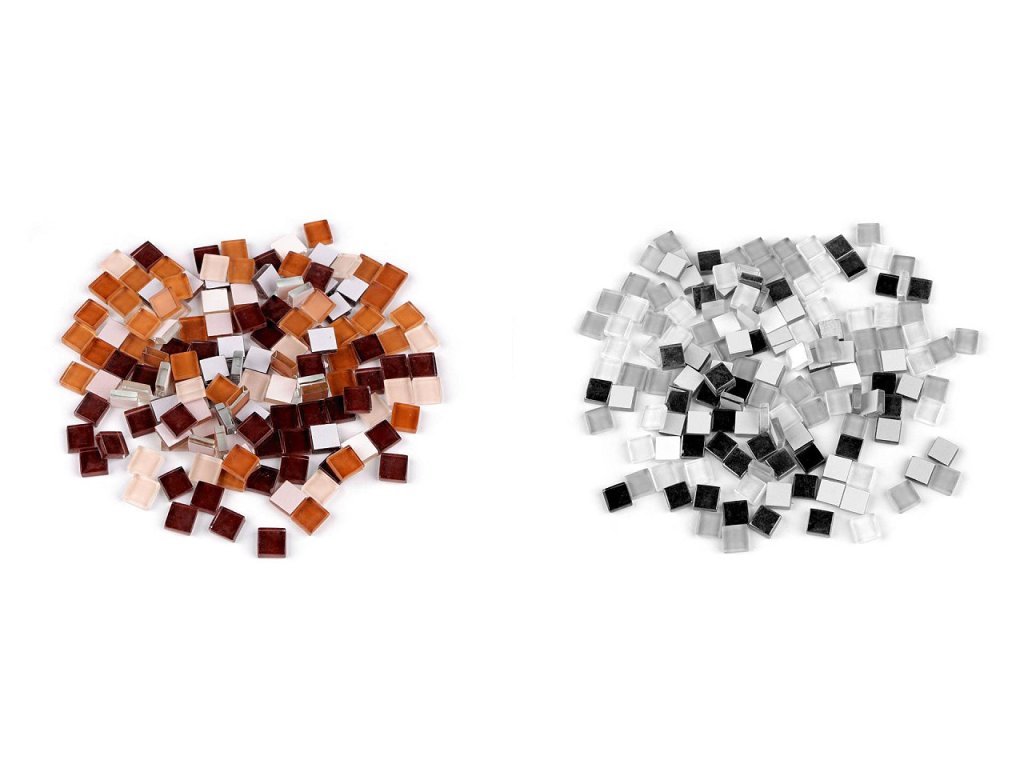 Skleněné mozaikové kamínky vynikají nádherným leskem a dokonalým povrchem. Hodí se k nalepení na materiály jako je plast, dřevo, kámen, kov, keramika a jiné. Hrany nejsou ostré, zadní strana je hladká. Mozaikou můžete ozdobit kartónové a dřevěné krabičky, květináče, šperkové polotovary, skleněné vázy, svícny, lahve, amfóry, kameny apod. Použití: objekt, na který budete mozaiku vytvářet, i kamínky musí být suché a čisté, bez prachu a mastnoty. Na připevnění mozaiky můžete použít beton, lepidlo nebo oboustrannou lepicí pásku. Lepidla stačí nanést trošku na kamínek a ten přilepit na vybrané místo. Lepidlo nechejte 24 hodin zaschnout. Poté můžete použít spárovací hmotu a výsledné dílo tak dotáhnout k dokonalosti, ale její použití není nutné. Kamínky můžete lepit těsně vedle sebe, jsou velice přesné, jeden jako druhý. V balení je cca 570 ks kamínků. Pokryjí plochu cca 20 x 30 cm.- Rozměry: 10 x 10 mm
