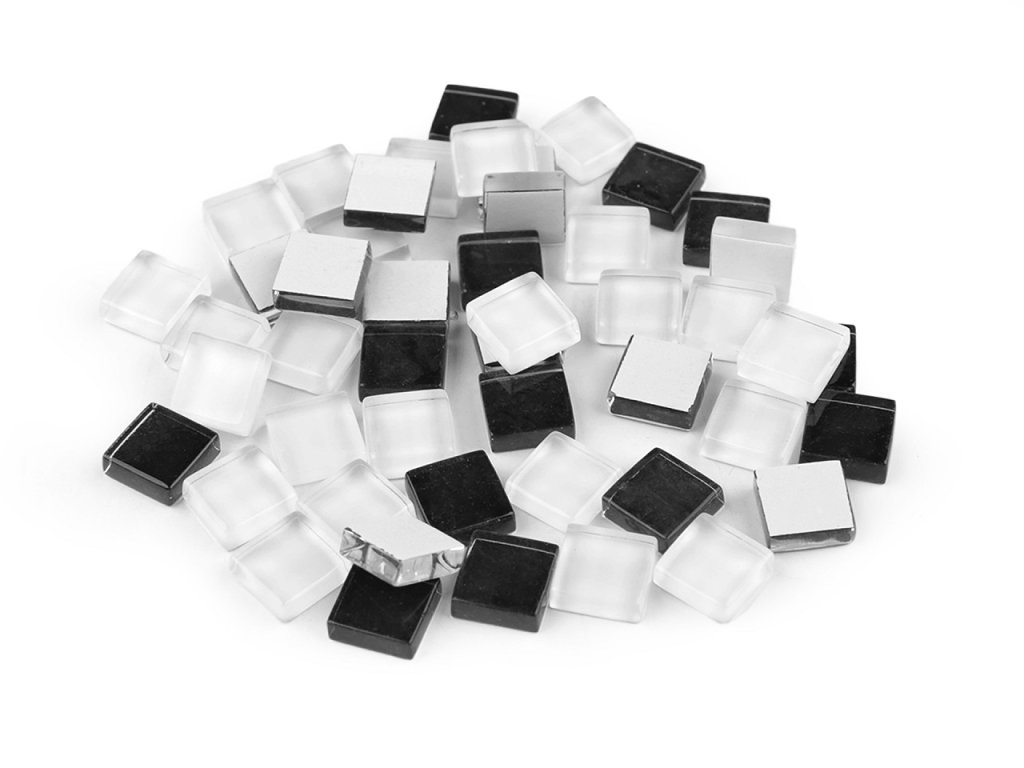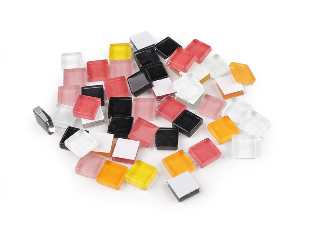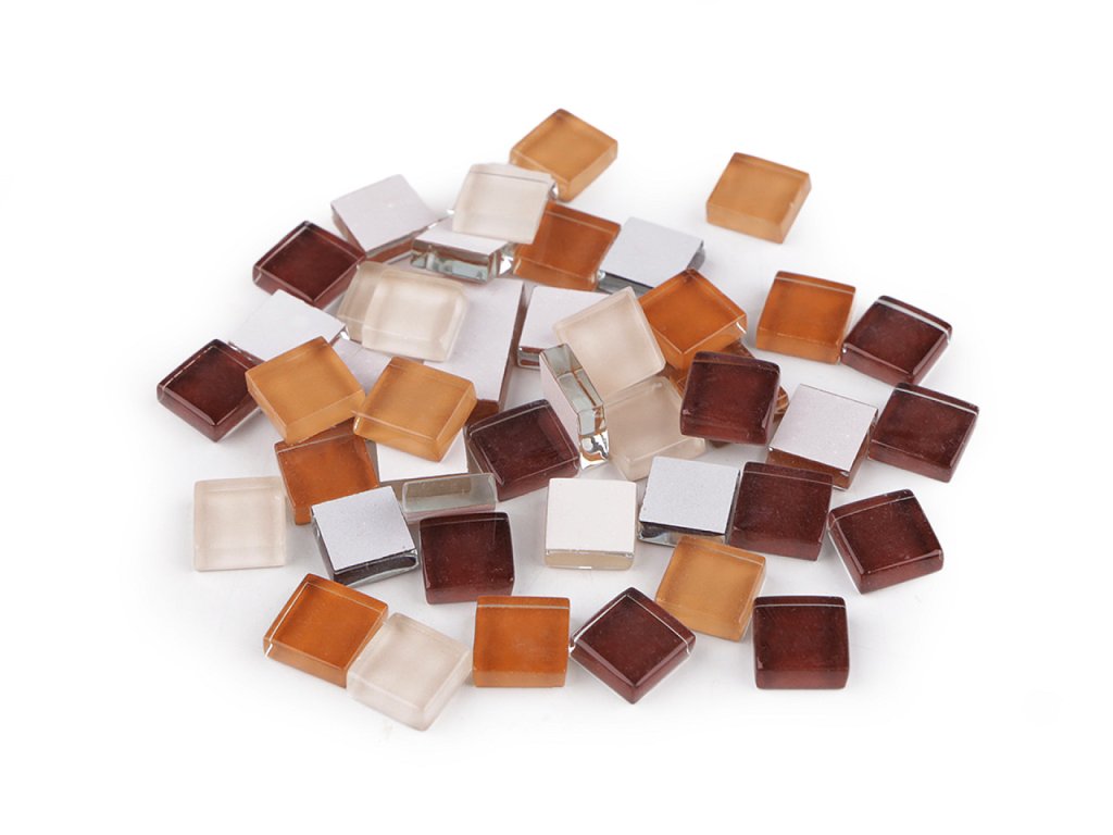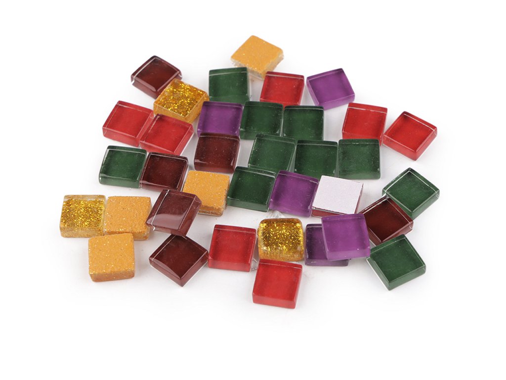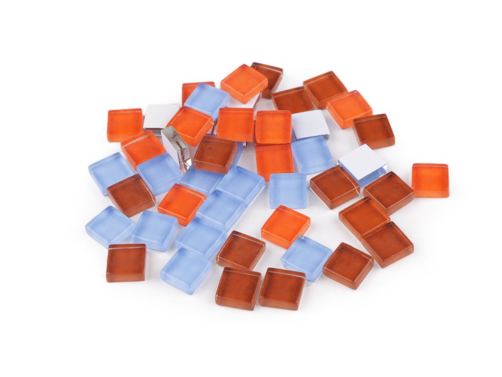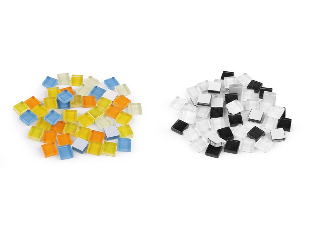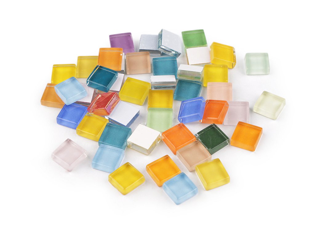 Skleněné mozaikové kamínky vynikají nádherným leskem a dokonalým povrchem. Hodí se na materiály jako je plast, dřevo, kámen, kov, keramika a jiné. Hrany nejsou ostré, zadní strana je hladká. Mozaikou můžete ozdobit kartónové a dřevěné krabičky, květináče, šperkové polotovary, skleněné vázy, svícny, lahve, amfóry, kameny apod. Použití: objekt, na který budete mozaiku vytvářet, i kamínky musí být suché a čisté, bez prachu a mastnoty. Na připevnění mozaiky můžete použít beton, lepidlo nebo oboustrannou lepicí pásku. Lepidla stačí nanést trošku na kamínek a ten přilepit na vybrané místo. Lepidlo nechejte 24 hodin zaschnout. Poté můžete použít spárovací hmotu a výsledné dílo tak dotáhnout k dokonalosti, ale její použití není nutné. Kamínky můžete lepit těsně vedle sebe, jsou velice přesné, jeden jako druhý. V balení je cca 46 ks kamínků. Pokryjí plochu cca 6 x 6 cm.- Rozměry: 10 x 10 mm