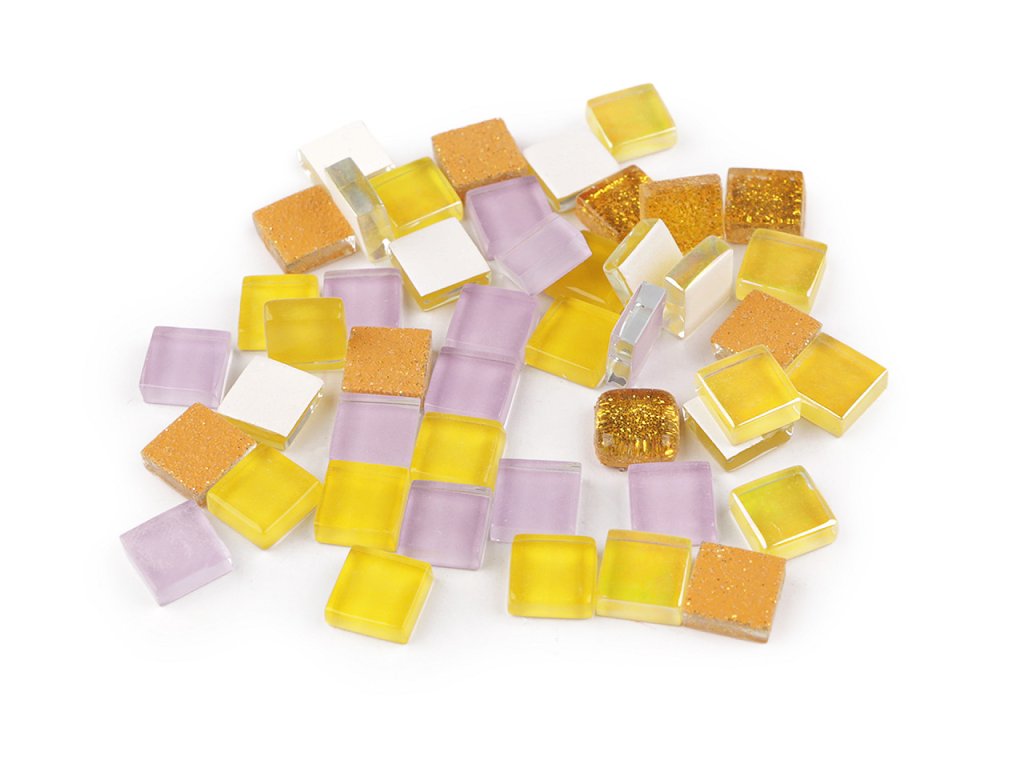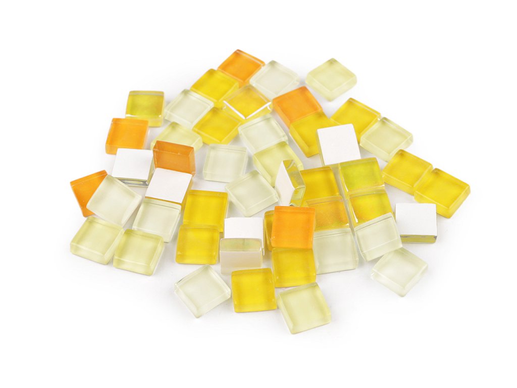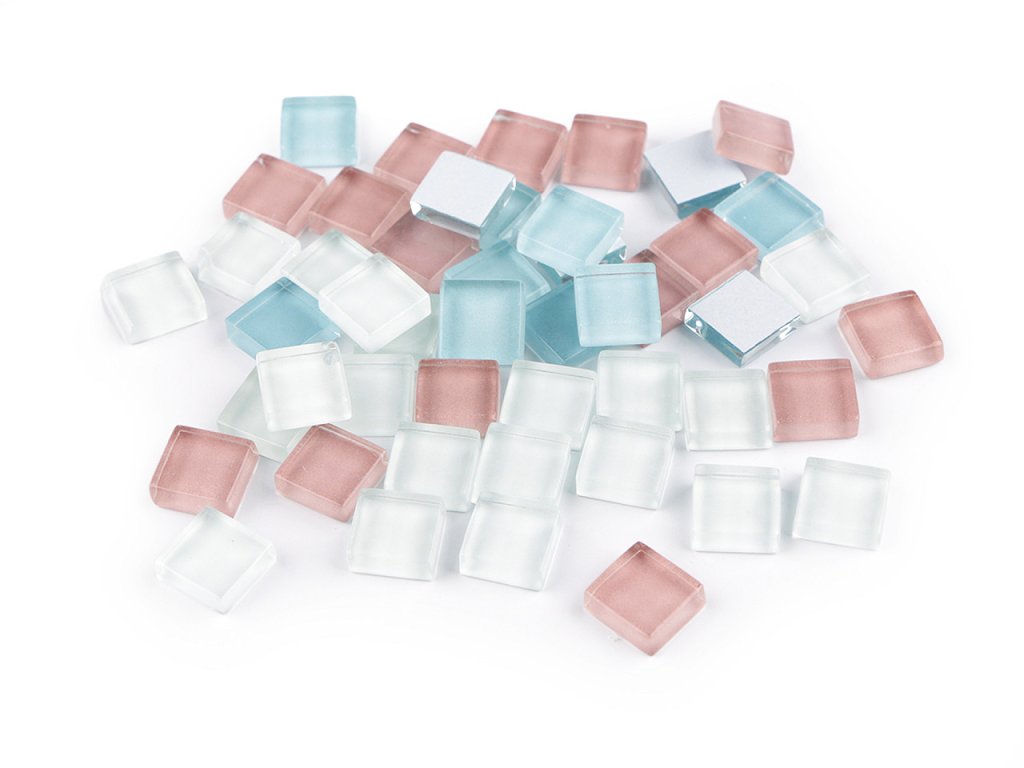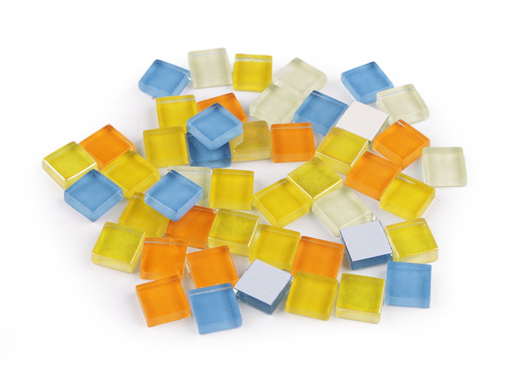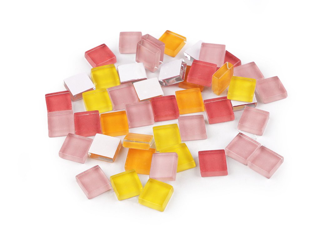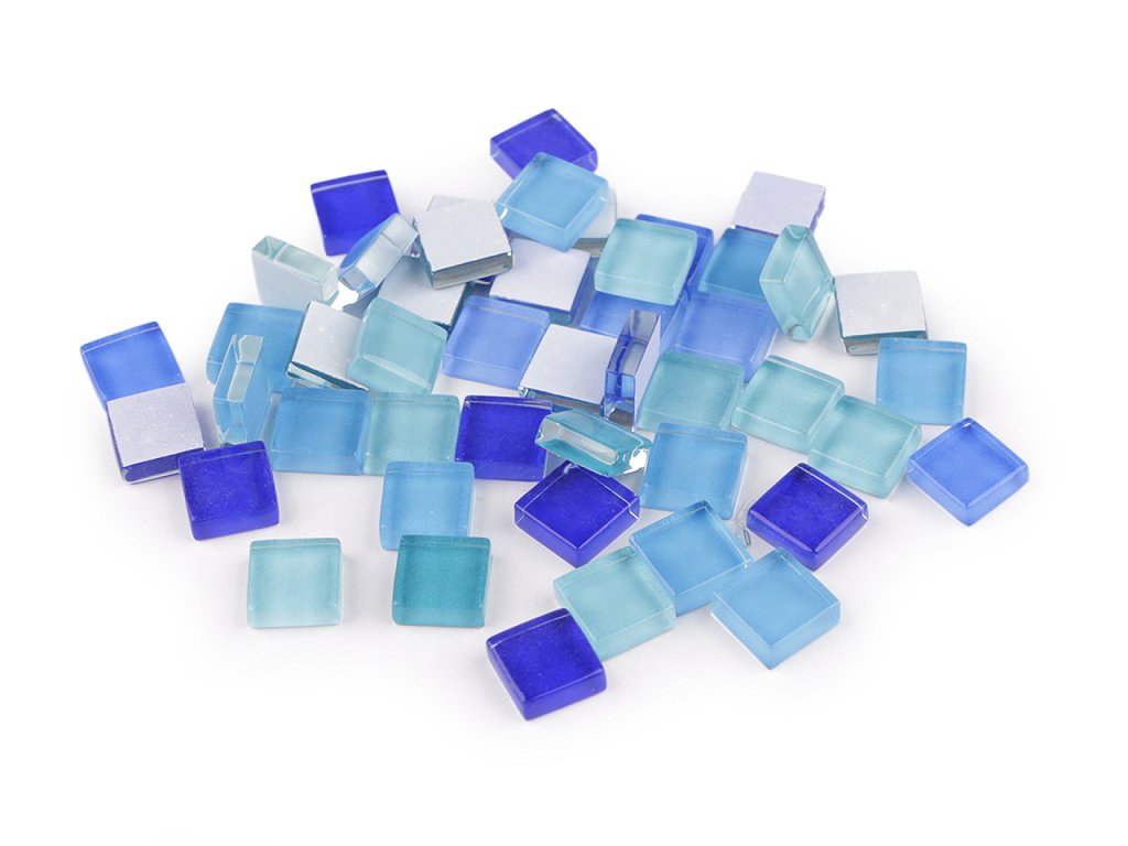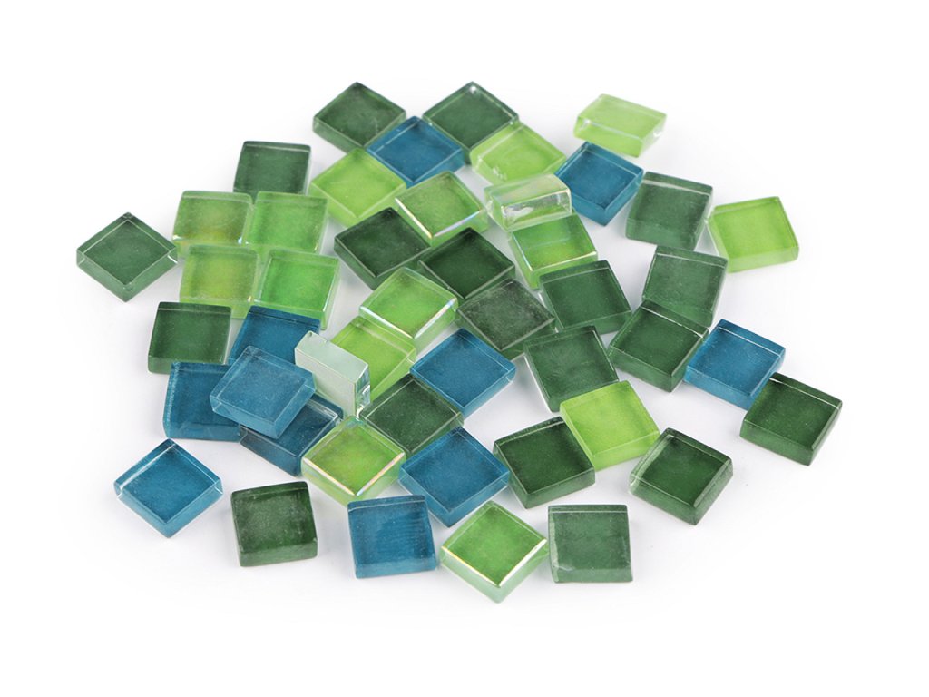 Skleněné mozaikové kamínky vynikají nádherným leskem a dokonalým povrchem. Hodí se na materiály jako je plast, dřevo, kámen, kov, keramika a jiné. Hrany nejsou ostré, zadní strana je hladká. Mozaikou můžete ozdobit kartónové a dřevěné krabičky, květináče, šperkové polotovary, skleněné vázy, svícny, lahve, amfóry, kameny apod. Použití: objekt, na který budete mozaiku vytvářet, i kamínky musí být suché a čisté, bez prachu a mastnoty. Na připevnění mozaiky můžete použít beton, lepidlo nebo oboustrannou lepicí pásku. Lepidla stačí nanést trošku na kamínek a ten přilepit na vybrané místo. Lepidlo nechejte 24 hodin zaschnout. Poté můžete použít spárovací hmotu a výsledné dílo tak dotáhnout k dokonalosti, ale její použití není nutné. Kamínky můžete lepit těsně vedle sebe, jsou velice přesné, jeden jako druhý. V balení je cca 46 ks kamínků. Pokryjí plochu cca 6 x 6 cm.- Rozměry: 10 x 10 mm