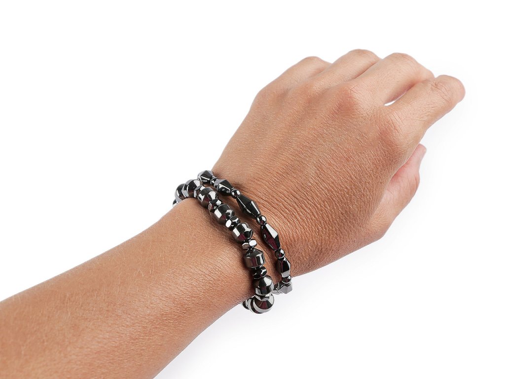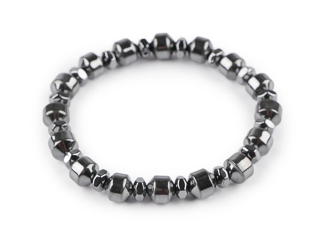 Pružný náramek z korálků pokoveného hematitu ocení ženy i muži - unisex. Díky pružence se snadno natáhne na ruku, má univerzální velikost. Hematitový náramek patří mezi šperky, které díky své fascinující povrchové úpravě zaujmou na první pohled. Je ideálním dárkem pro všechny příležitosti, od narozenin po výročí.- Délka: 18 - 24 cm