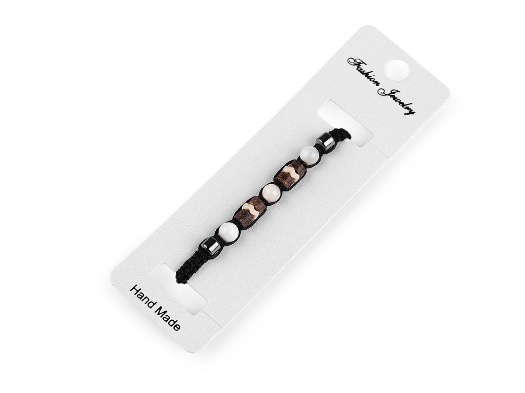Shamballa náramky se zajímavými korálky jsou doplňkem vhodným pro ženy i muže - unisex. Může sloužit jako symbol rovnováhy a meditace ve vašem každodenním životě. Hodí se na běžné nošení nebo jako dárek pro někoho blízkého. Na macramé šňůrky jsou harmonicky rozmístěné korálky, které imitují minerály. Zapínání je posuvné, oba konce náramku procházejí středovým uzlem, který umožňuje utažení šňůrek. Náramek má univerzální velikost. Náramek se prodává na papírové kartě, která se dá zavěsit na prodejní stojany.- Obvod: 14 - 27 cm