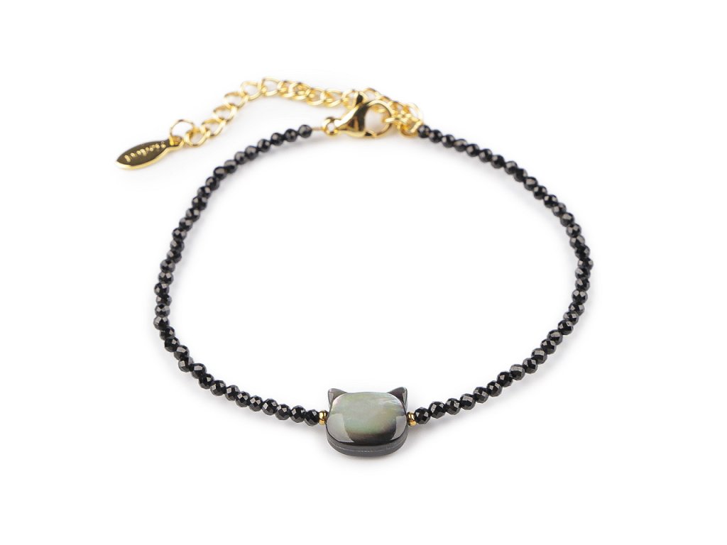 Náramek z broušených korálků kočka