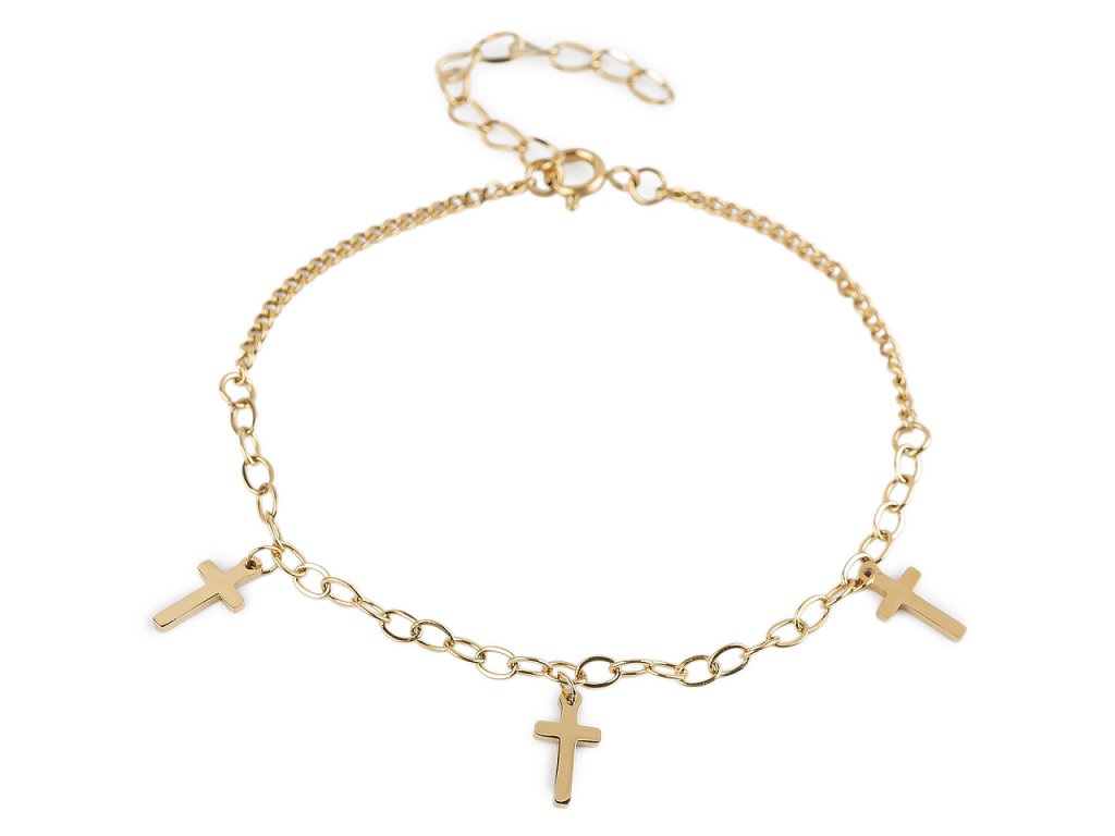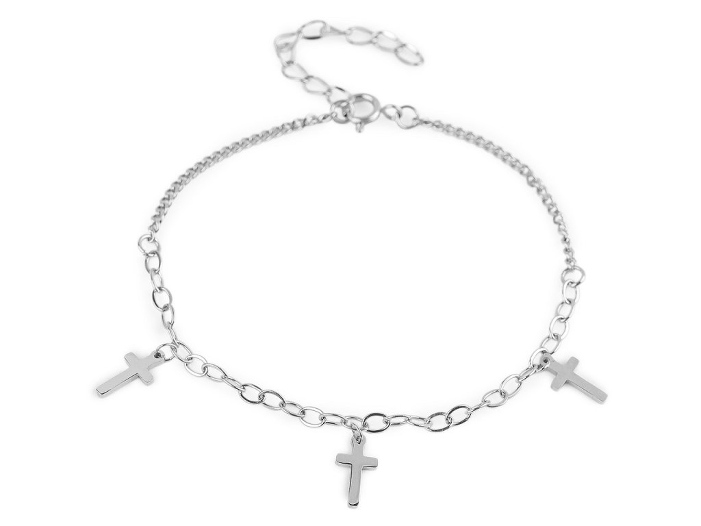 Náramek z nerezové oceli s křížky má jednoduchý a elegantní design. Je ideálním módním doplňkem pro každodenní nošení. Díky zapínání na karabinku a adjustačnímu řetízku je náramek snadno nastavitelný a dokonale se přizpůsobí vašemu zápěstí. Rozměry křížku jsou 5 x 10 mm.- Délka: 17 cm