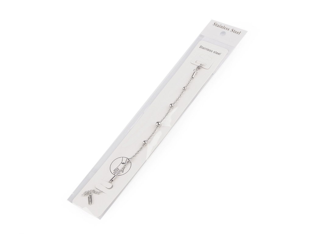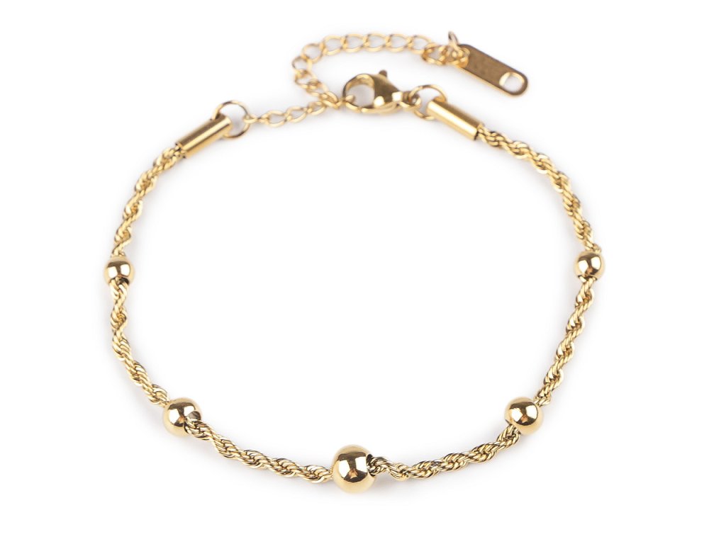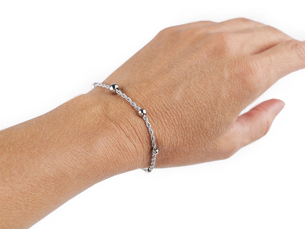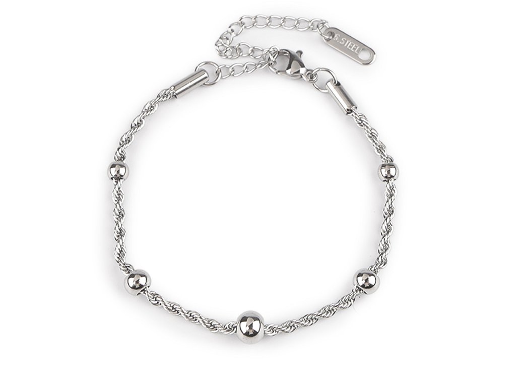 Elegantní náramek z krouceného řetízku je vyrobený z kvalitní nerezové oceli. Je ozdobený korálky s vysokým leskem, které pevně drží na svém místě. Náramek se krásně třpytí, oceníte jej na slavnostní události, ale pro svůj poutavý vzhled si jej oblíbíte i na každodenní nošení. Zapíná se na karabinku a prodlužovací řetízek.- Délka: 16,5 cm