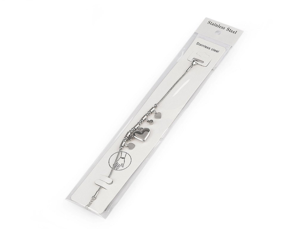 Dvojitý náramek se srdíčky a kuličkami má kvalitní zpracování z nerezové oceli. Řetízky jsou klasické očkové, srdíčka mají vysoký zrcadlový lesk....