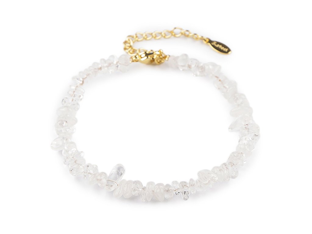 Náramek ze zlomků minerálů je jedinečný kousek, který v sobě spojuje eleganci a přírodní krásu. Skvěle se hodí k různým stylům oblečení. Zaujme na první pohled, potěší každou ženu. Bude dárkem, se kterým nešlápnete vedle. Tento náramek nejen ozdobí zápěstí, ale také přinese pocit klidu a spojení s přírodou. Zapíná se na karabinku a prodlužovací řetízek z nerezové oceli.- Délka: 16 cm
