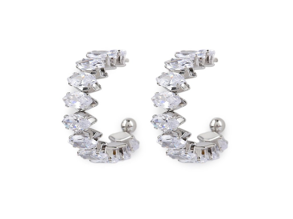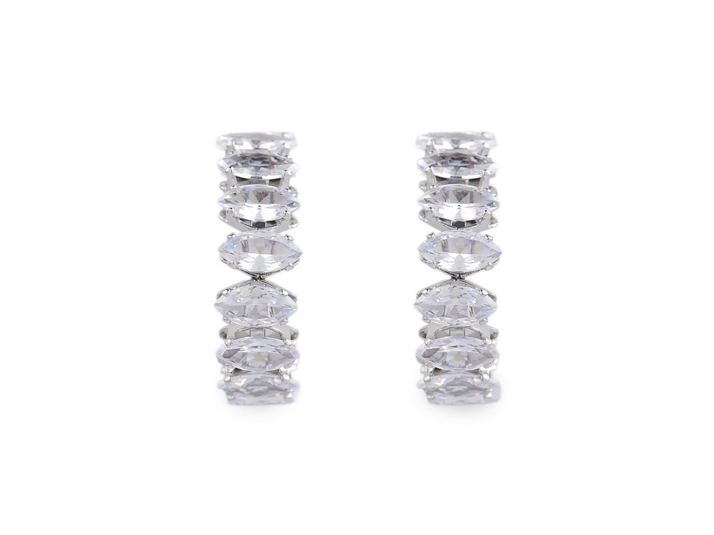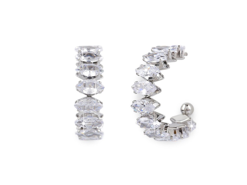 Náušnice z kvalitní nerezové oceli jsou celé osázené broušenými kamínky ve tvaru navetek. Mají oslnivý třpyt, jsou nepřehlédnutelné. Hodí se ke slavnostním šatům, ale využijete je i na běžné nošení. Mají tvar neuzavřeného kruhu. Puzeta je s kovovou zarážkou proti vypadnutí.- Průměr: 25 mm