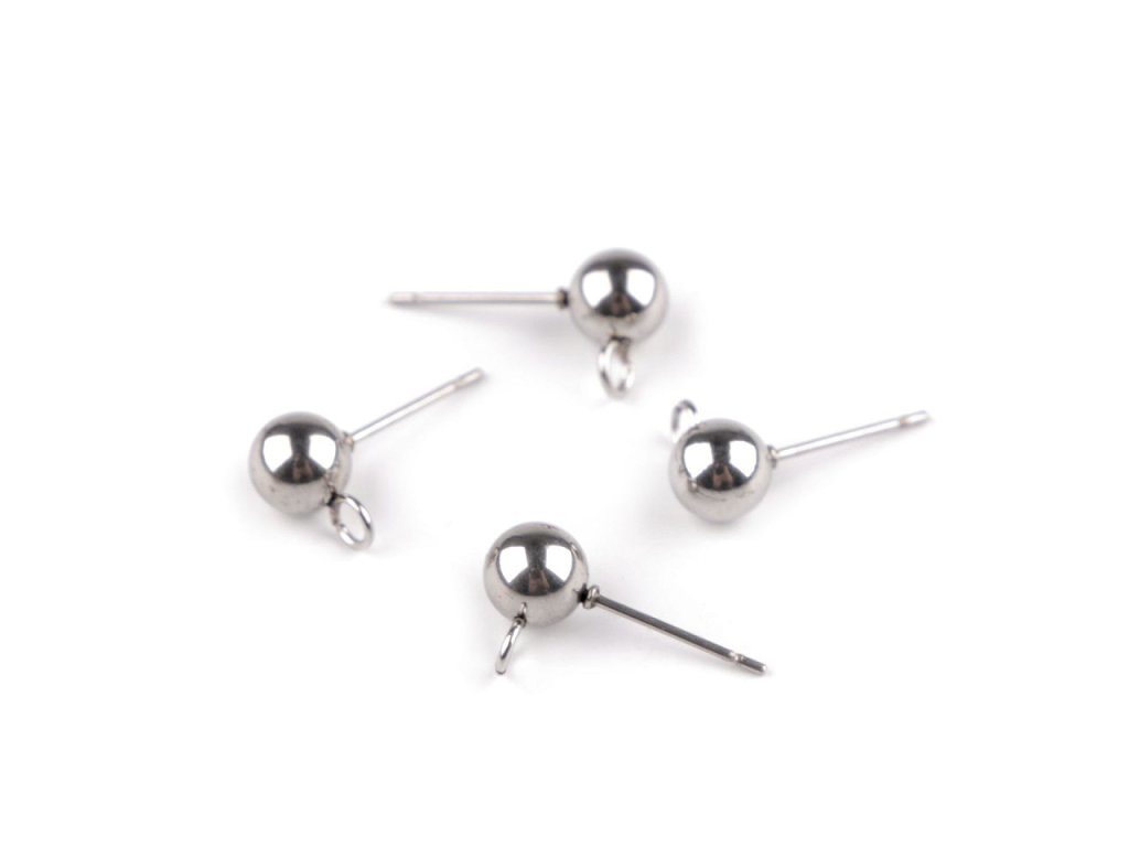 Náušnicové puzety s kuličkou jsou vyrobené z kvalitní nerezové oceli. Do dolního rozevíracího očka se dá zavěsit naketlovaný ověs, který vyrobíte díky spojovacího kroužku nebo ketlovací jehly (nýtu). Na dříku je zářez na umístění zarážky, která zabrání vypadnutí náušnice z ucha.- Průměr kuličky: 6 mm