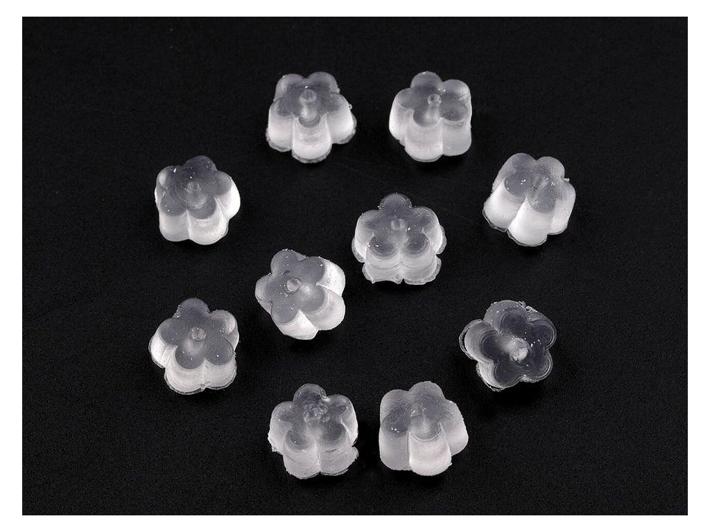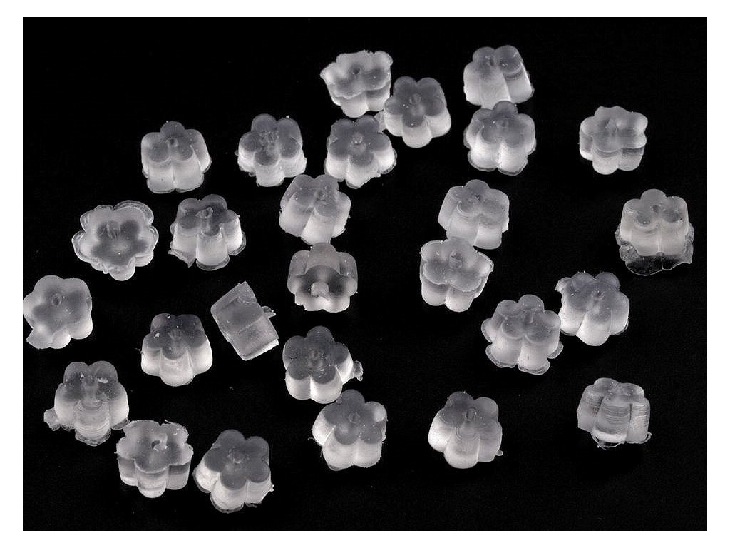 Praktická silikonová zarážka ve tvaru květinky se používá na všechny otevřené konce náušnic jako zapínání. Využijete ji na puzetách i afroháčcích. Spolehlivě zabrání, aby náušnice nevyklouzla z ušního lalůčku. 5 g = cca 115 ks 30 g = cca 670 ks 420 g = cca 7170 ks- Průměr: 5 mm