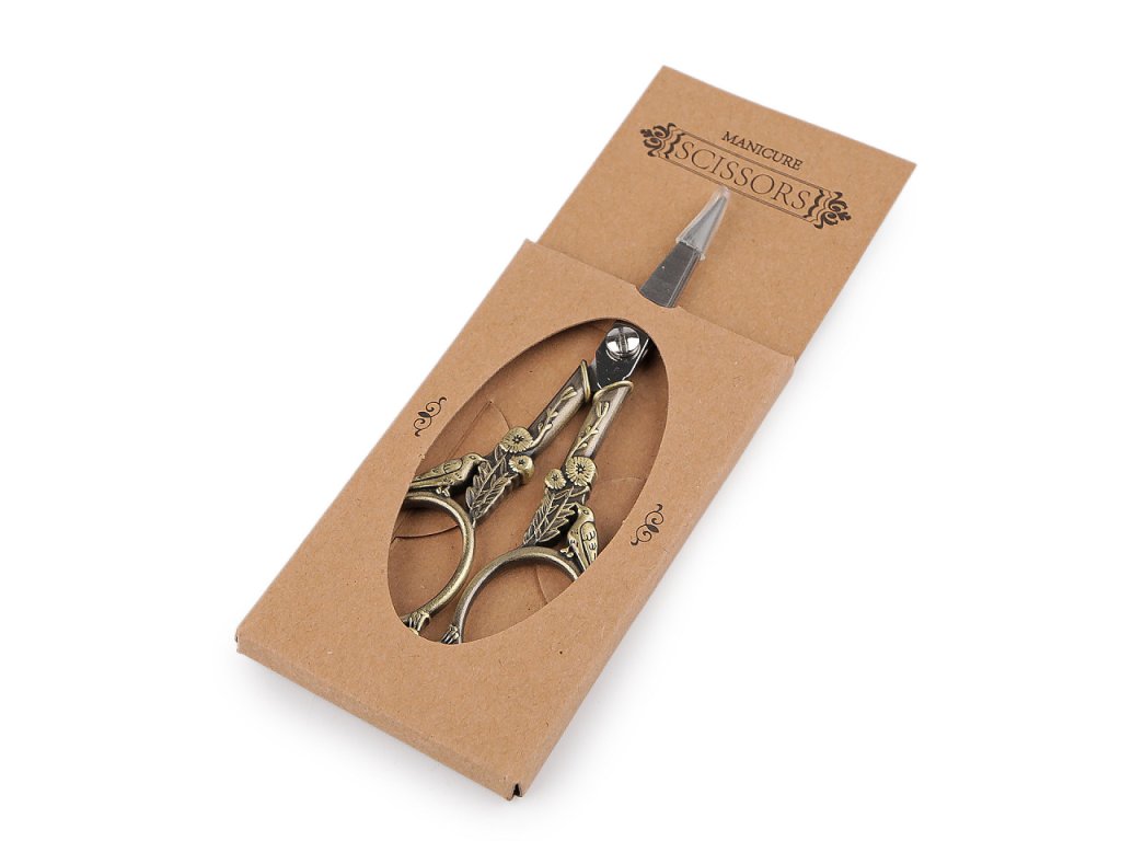 Celokovové nůžky na první pohled upoutají pozornost zdobenou vintage rukojetí. Díky své malé velikosti jsou vhodné na pečlivé stříhání drobných věcí a detailů. Využijete je při vyšívání, stříhání či vystřihování papíru apod.