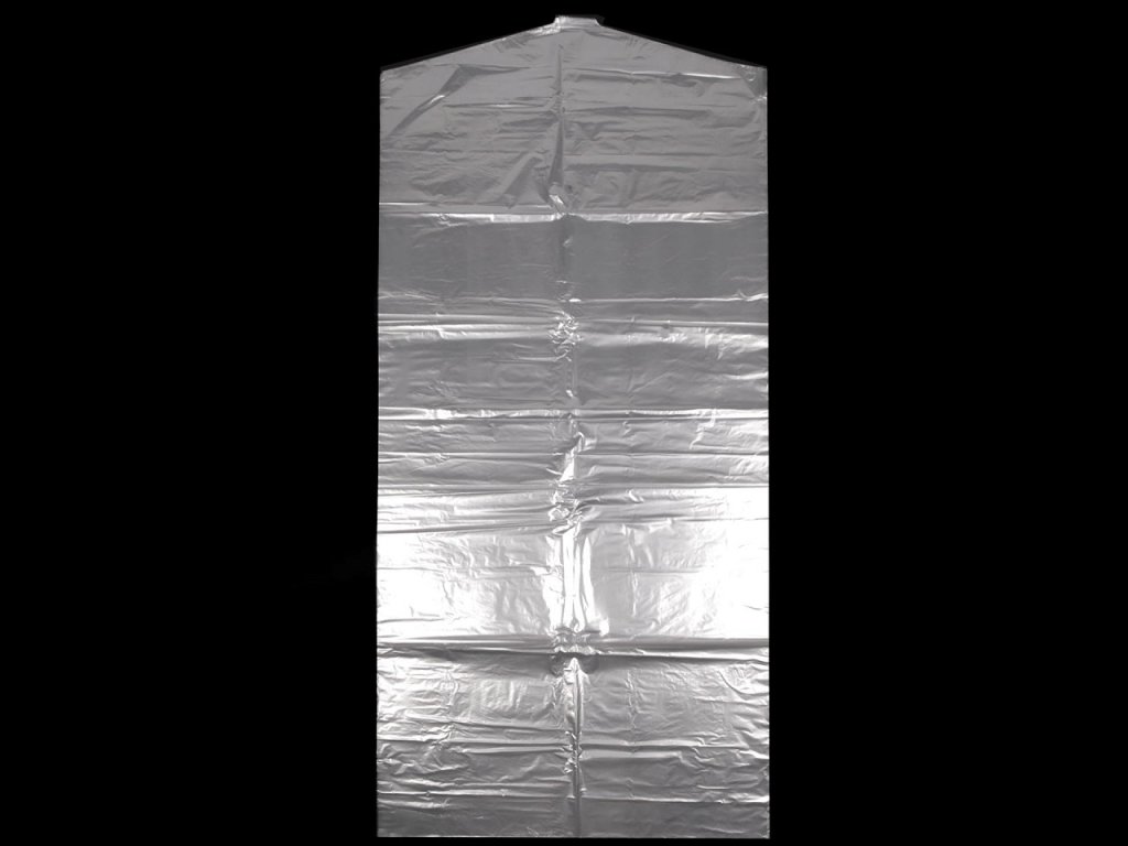 Igelitový obal ochrání oděvy od znečištění a prachu. V horní části je průstřih na ramínko.