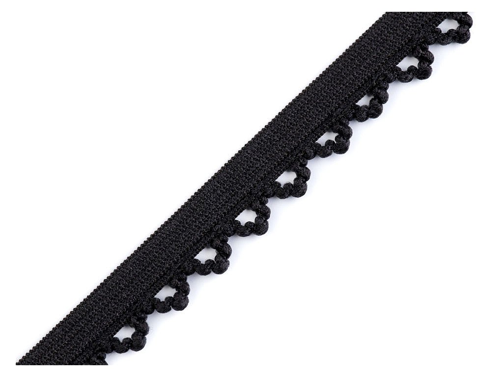 Ozdobná pruženka s obloučkovým okrajem je příjemná na dotek a jemná v tahu. Použití: Pruženka se používá k lemování spodního prádla, podvazků, halenek, šatů apod. Je vhodná také na výrobu ramínek ke košilkám, tílkům nebo podprsenkám. Krajka má šíři 5 mm.- Šíře: 10 mm