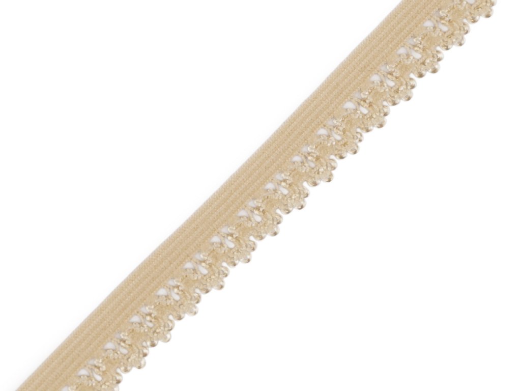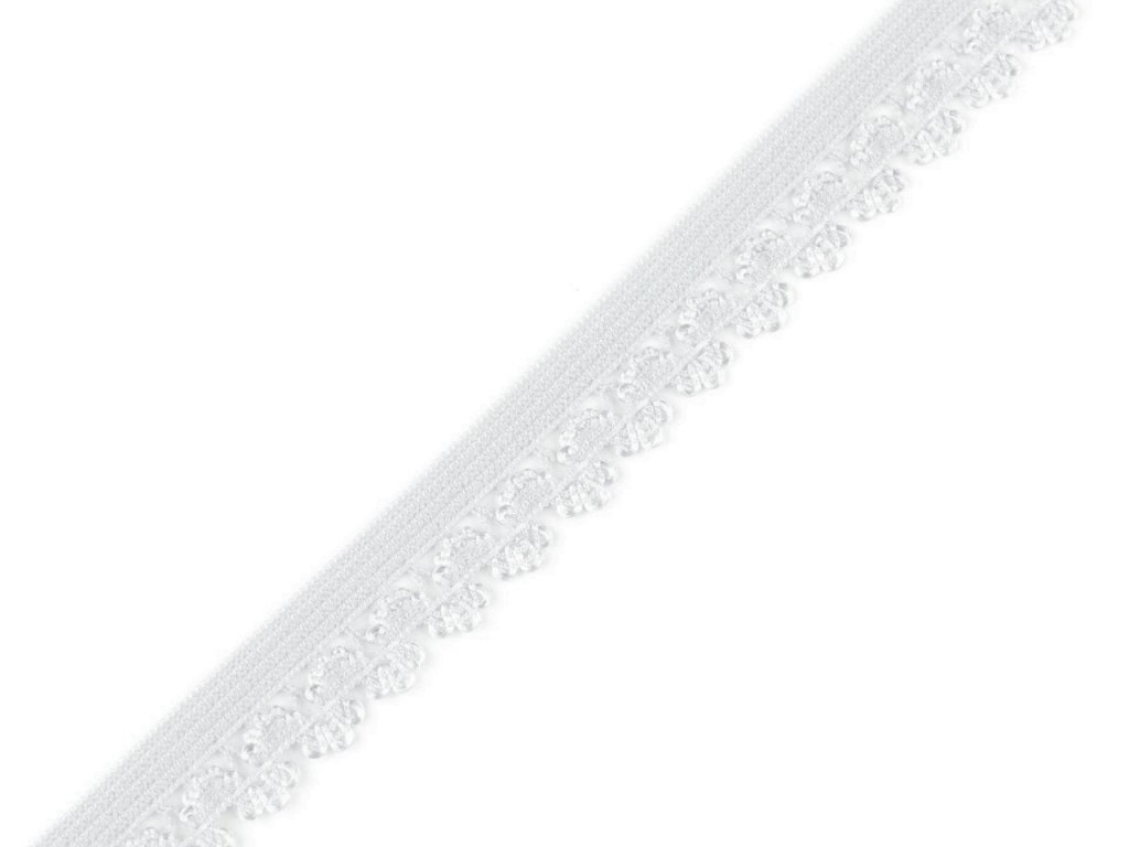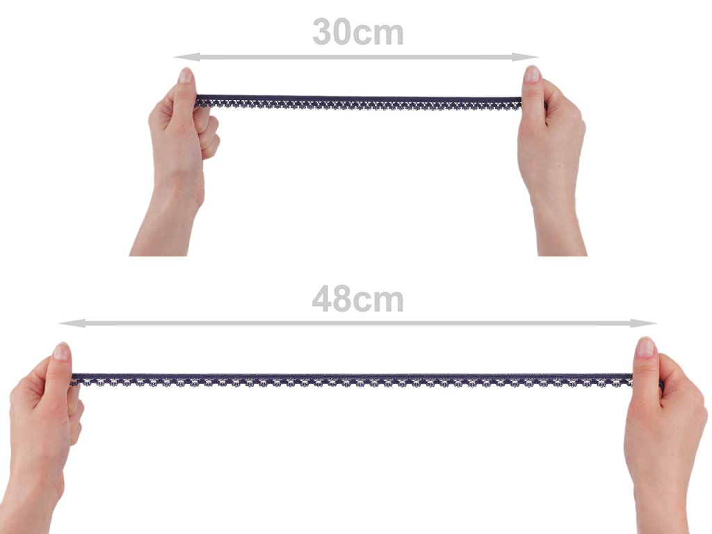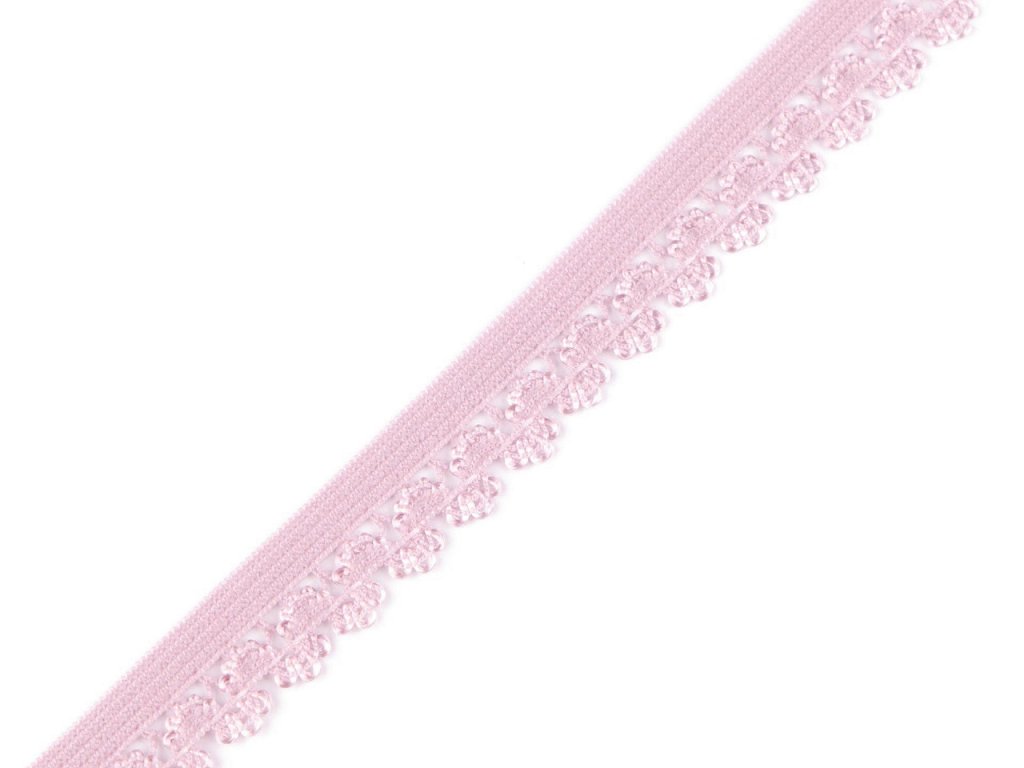 Ozdobná pruženka s krajkou je příjemná na dotek a jemná v tahu. Využijete ji k lemování spodního prádla, podvazků, halenek, šatů apod. Je vhodná také na výrobu ramínek ke košilkám, tílkům nebo podprsenkám.