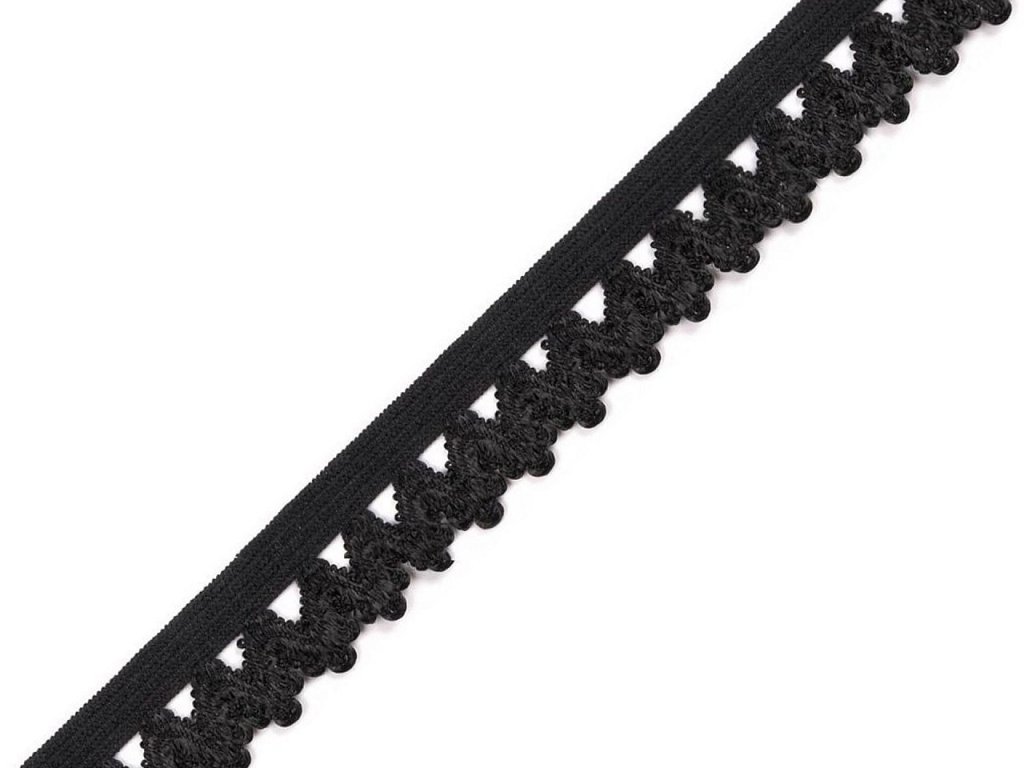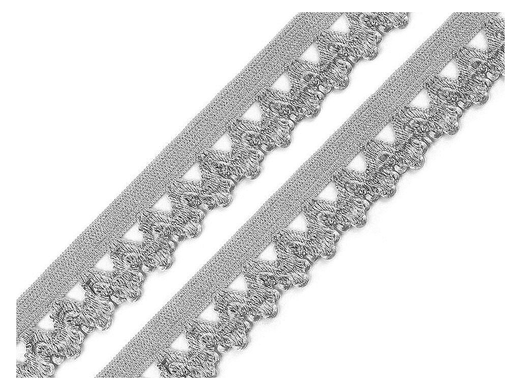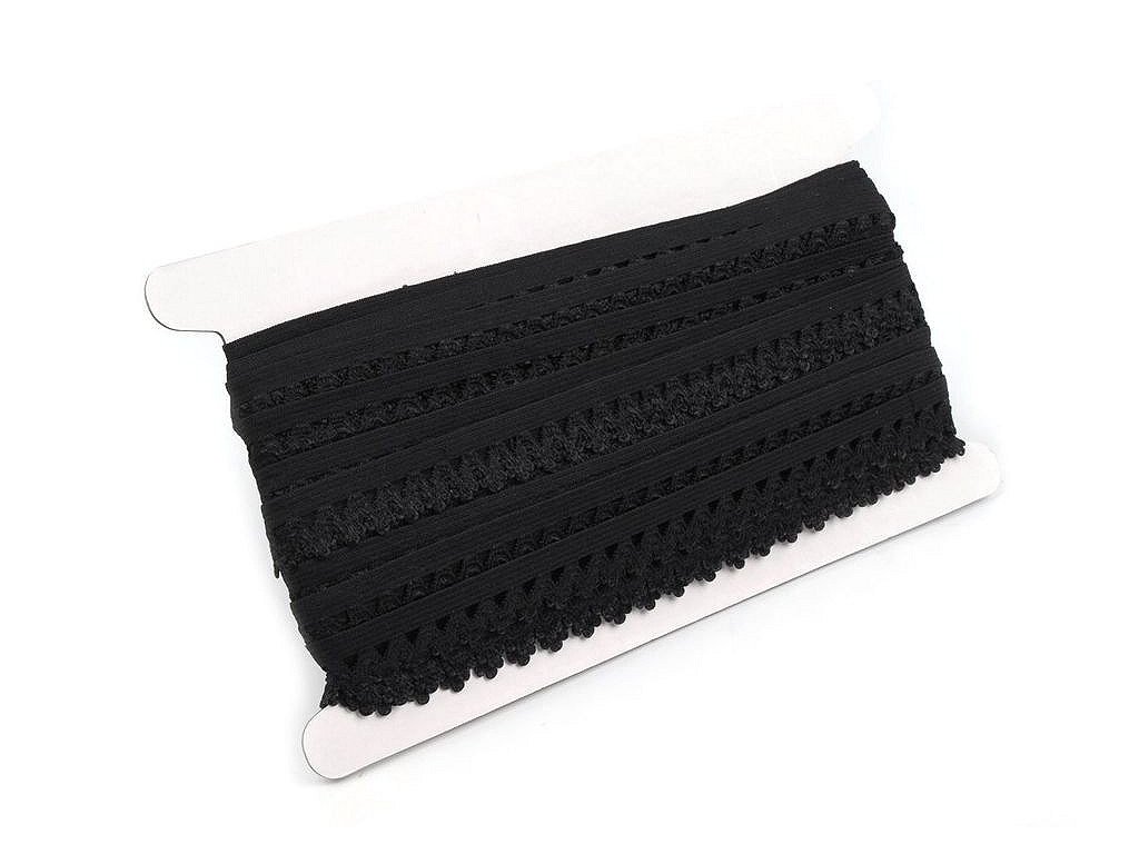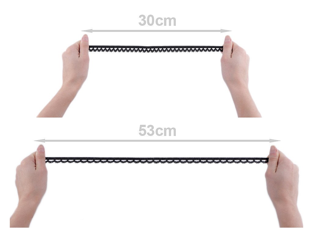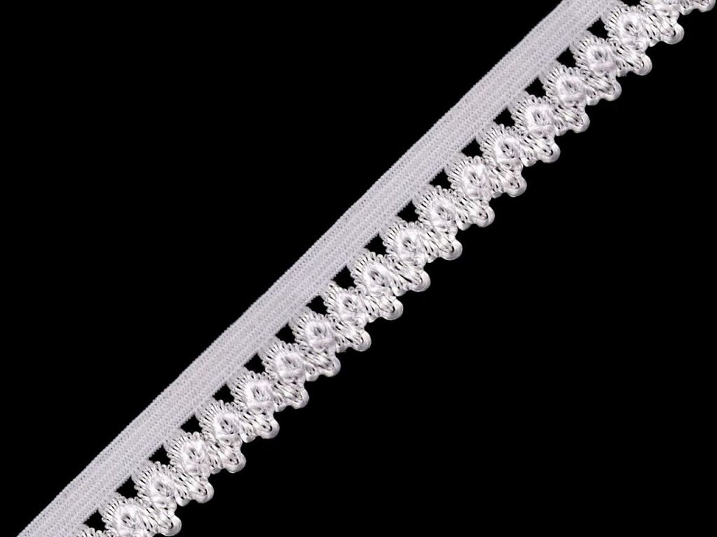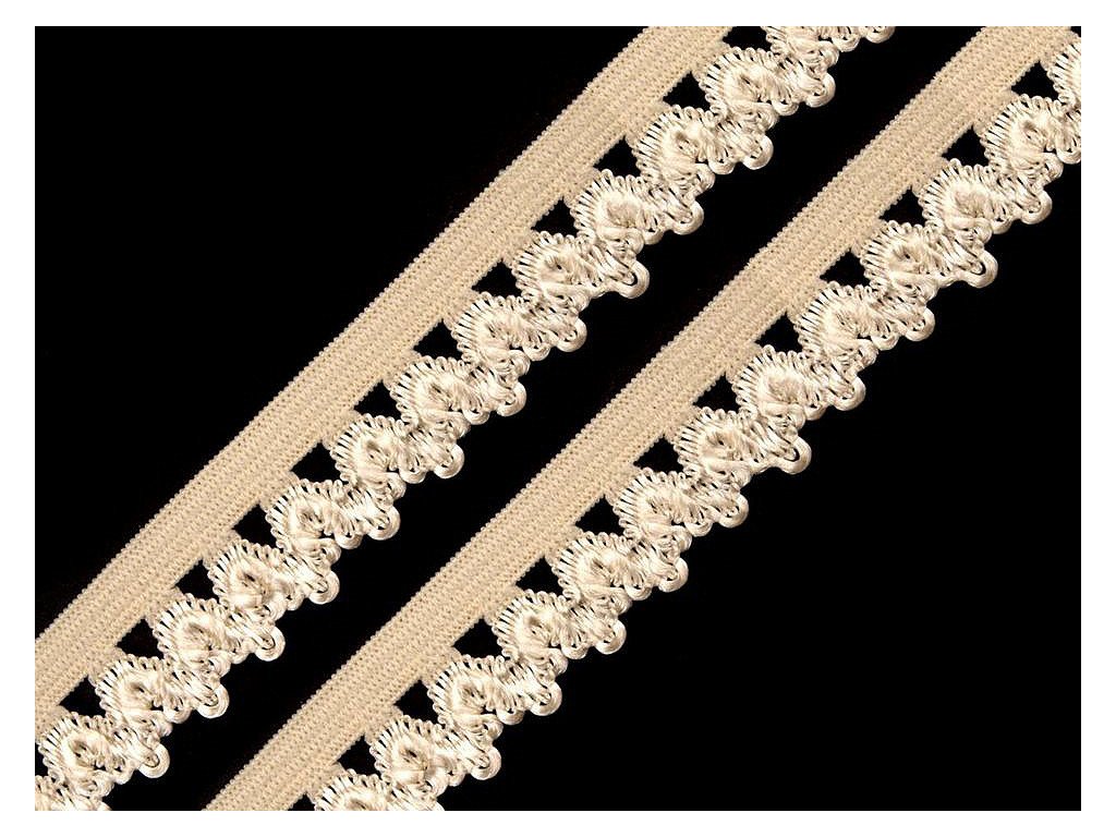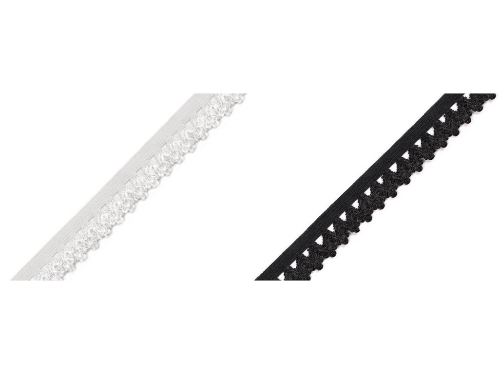 Ozdobnou pruženku zdobí vlnkovaný okraj. Je jemná v tahu. Použití: Pruženka je vhodná k lemování spodního prádla, podvazků, halenek, šatů apod. Můžete ji také použít na výrobu ramínek ke košilkám, tílkům nebo podprsenkám. Návin se může lišit o ± 5%. Krajka má šíři 10 mm.- Šíře: 18 mm