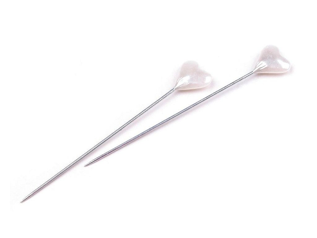 Dekorační špendlík má perleťovou hlavičku ve tvaru srdíčka. Slouží jako ozdoba k upevnění dekorace - např.do aranžmá živých květů.