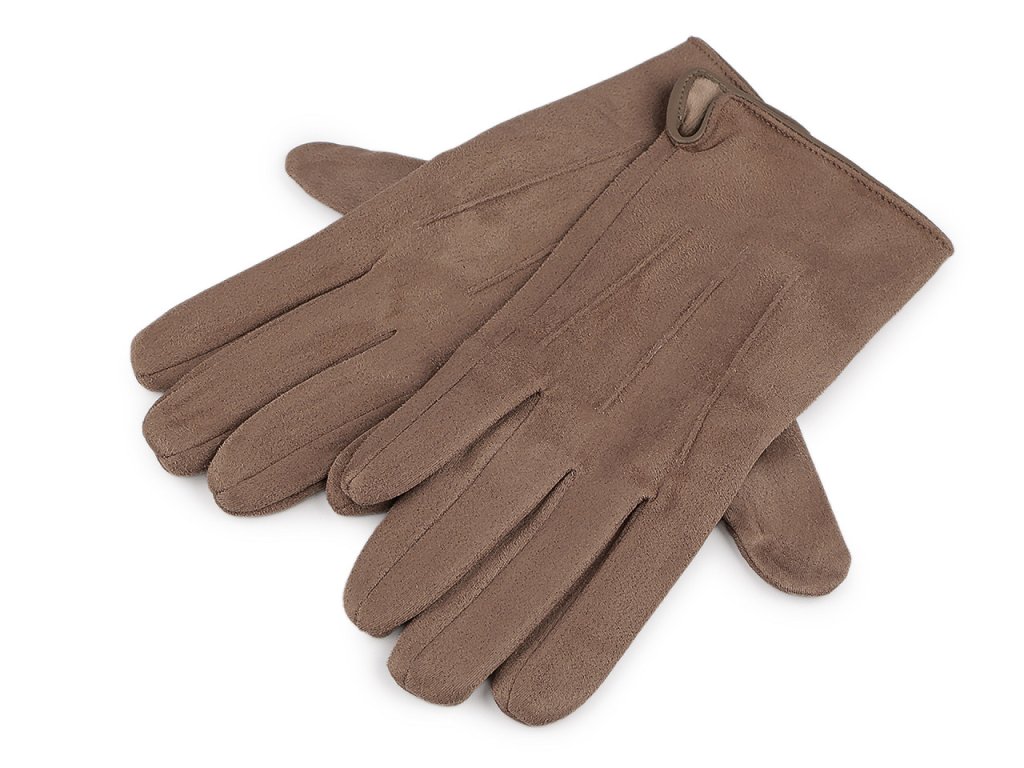Pánské rukavice jsou jemně pružné, z velice příjemného materiálu. Povrch rukavic připomíná broušenou kůži. Uvnitř mají jemný plyš, jenž je velice příjemný na dotek. Hodí se do mírné zimy nebo do chladnějšího podzimního počasí. Na ukazováčku pravé i levé ruky jsou vyšité kroužky, díky kterým můžete ovládat dotykové přístroje - mobil, tablet, bankomat apod. Šířka je měřená na volně položených rukavicích uprostřed (bez palce).- Velikost XL: 10 x 24,3 cm