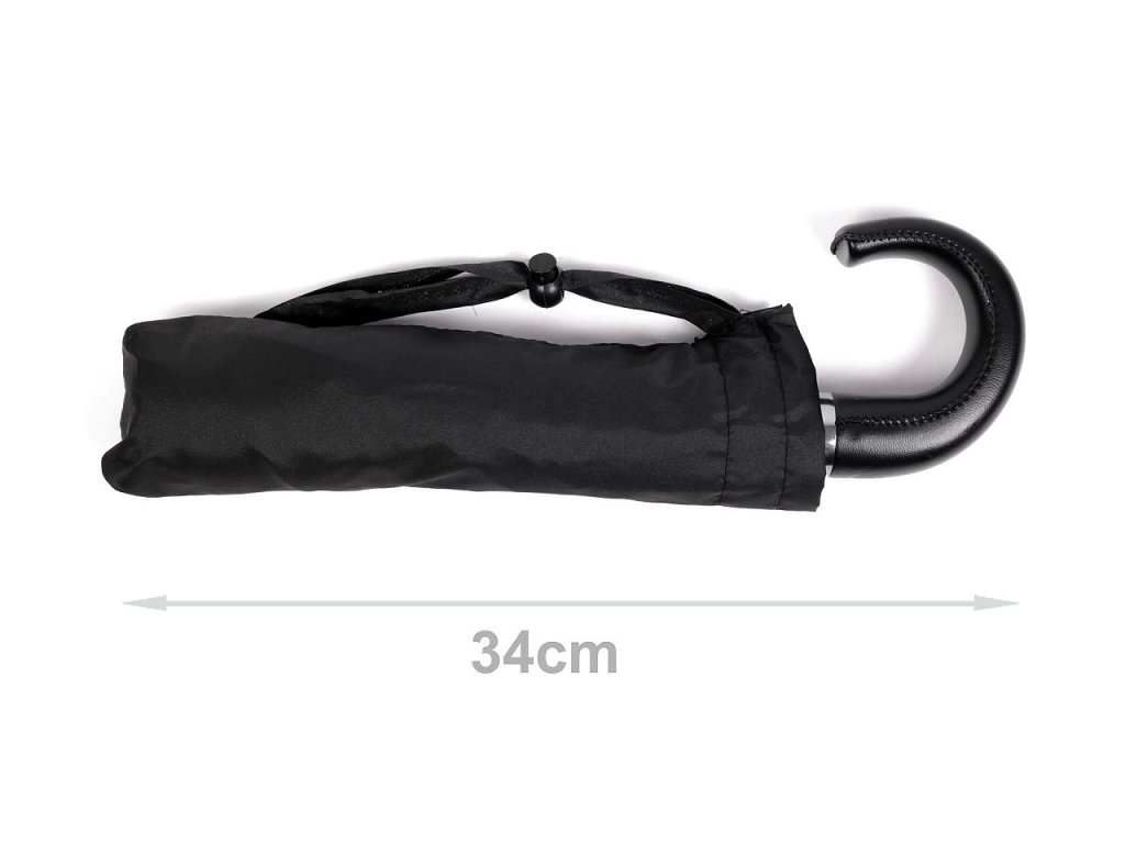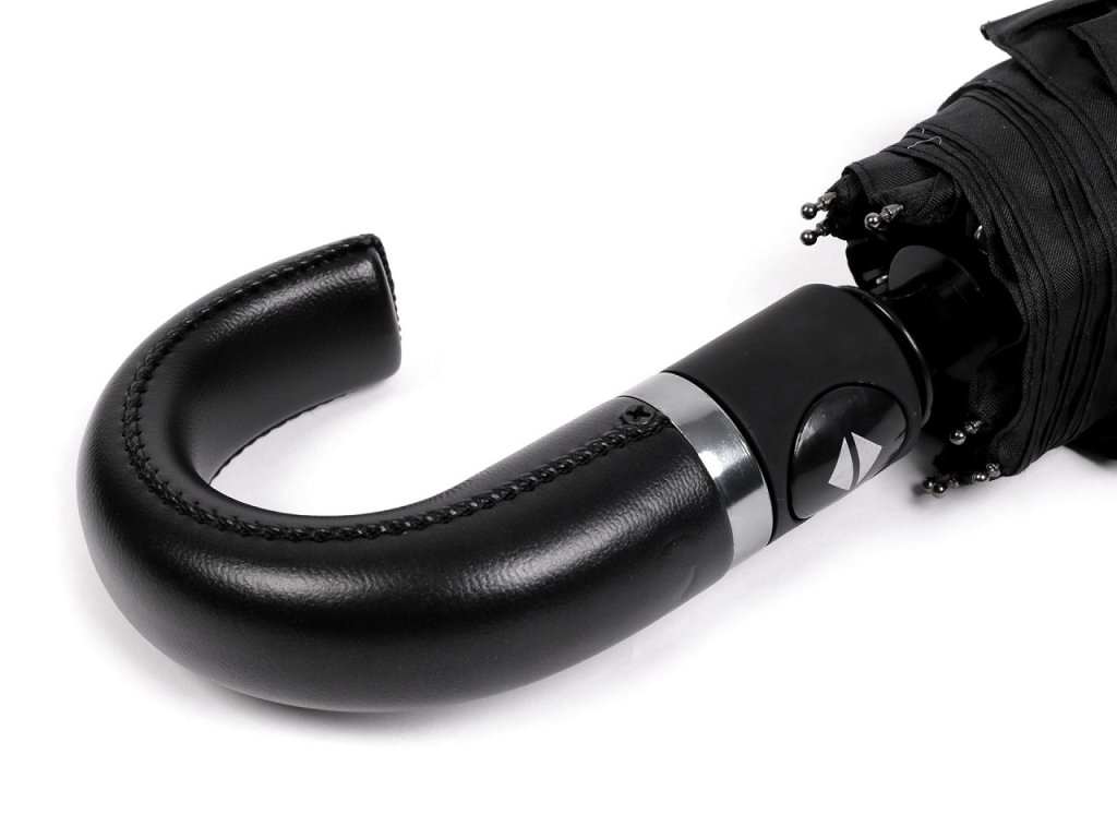 Plně automatický skládací deštník je vyrobený z kvalitního materiálu. Má vystřelovací/sestřelovací mechanizmus. Deštník se rozevře i zavře stisknutím tlačítka se šipkou nahoru nebo dolů. Vyhovuje vysokým požadavkům, splňuje všechna kritéria maximální funkčnosti a odolnosti, ale také praktičnosti. Deštník je velice pevný, odolá náporům větru. Konstrukce je tvořená osmi poli. Deštník má rukojeť z eko kůže, složíte jej do ochranného obalu. Hloubka deštníku je 23 cm. Celková délka je 62 cm. Délka složeného deštníku je 34 cm.- Rukojeť: eko kůže