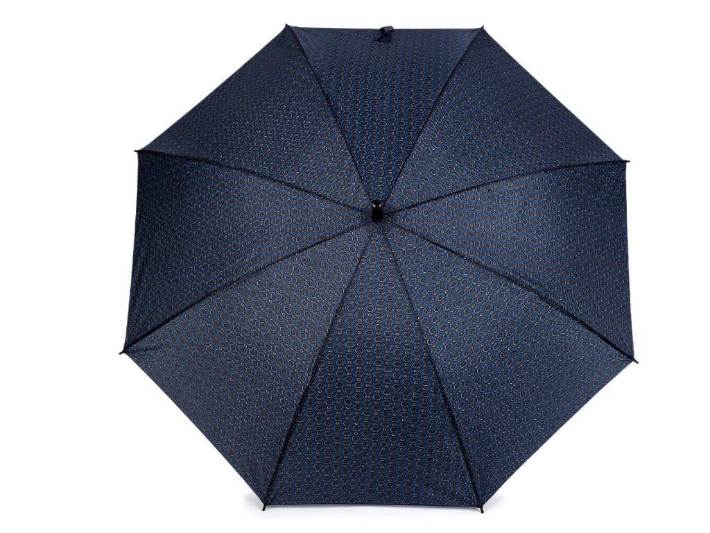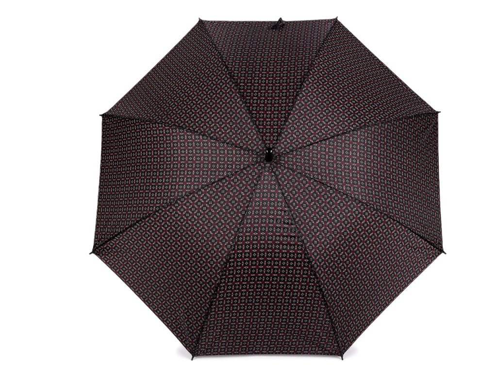 Pánský vystřelovací deštník má potah s jemným designem s různými motivy. Konstrukce deštníku je z kovového drátu a pružných lamel, tvoří osm polí. Díky nim je velice pevný, neohne se ani za největšího nečasu. Klasická tyč je zakončená pevnou rukojetí. Hloubka deštníku je 24 cm.- Rukojeť: plastová