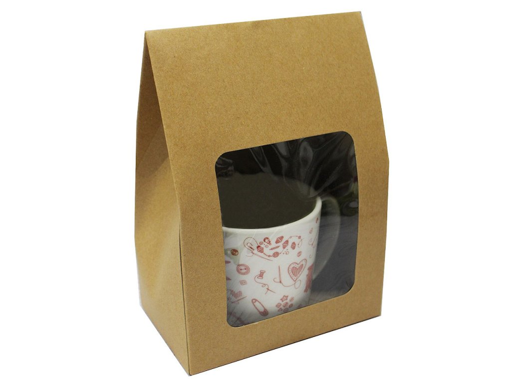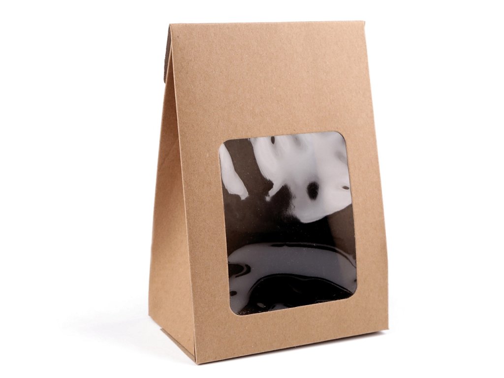Papírová krabice s průhledem a širším dnem