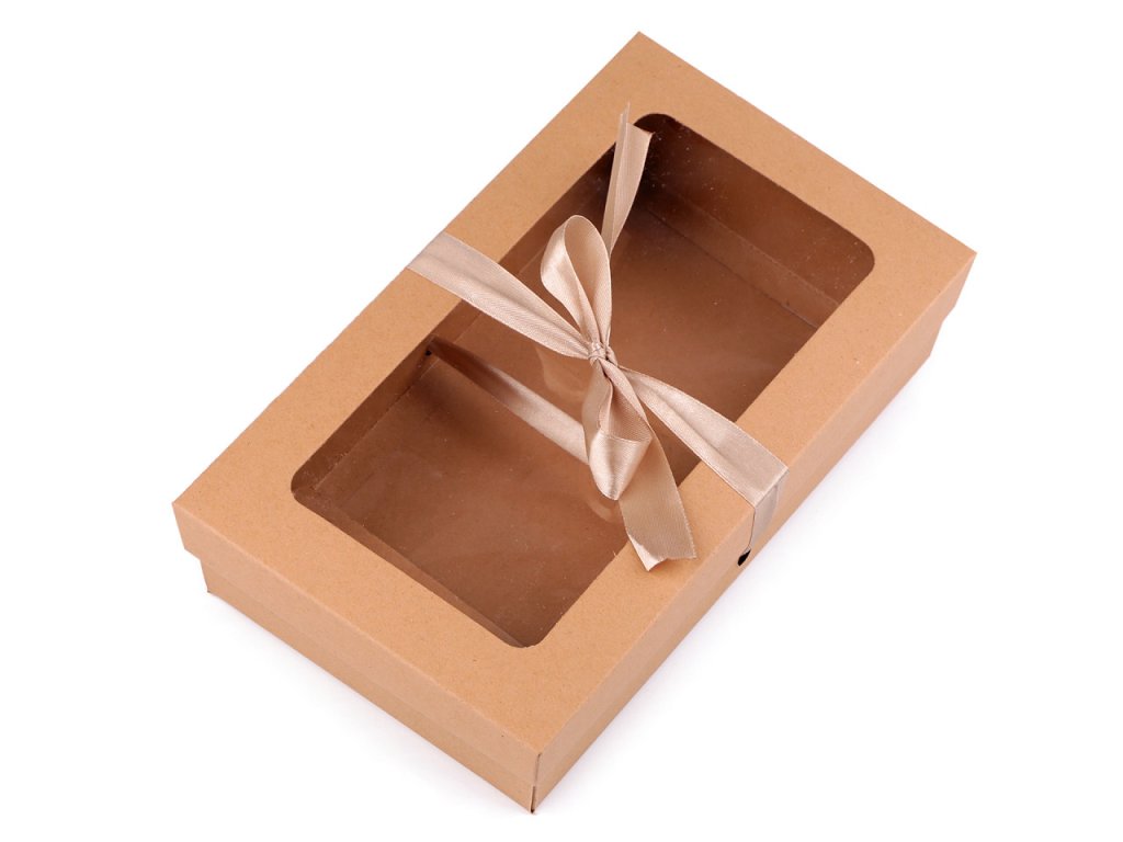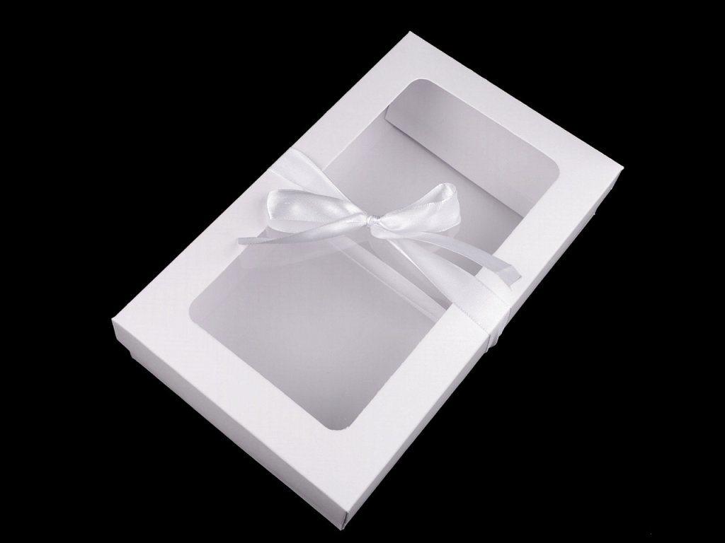 Papírová krabička s průhledem a stuhou