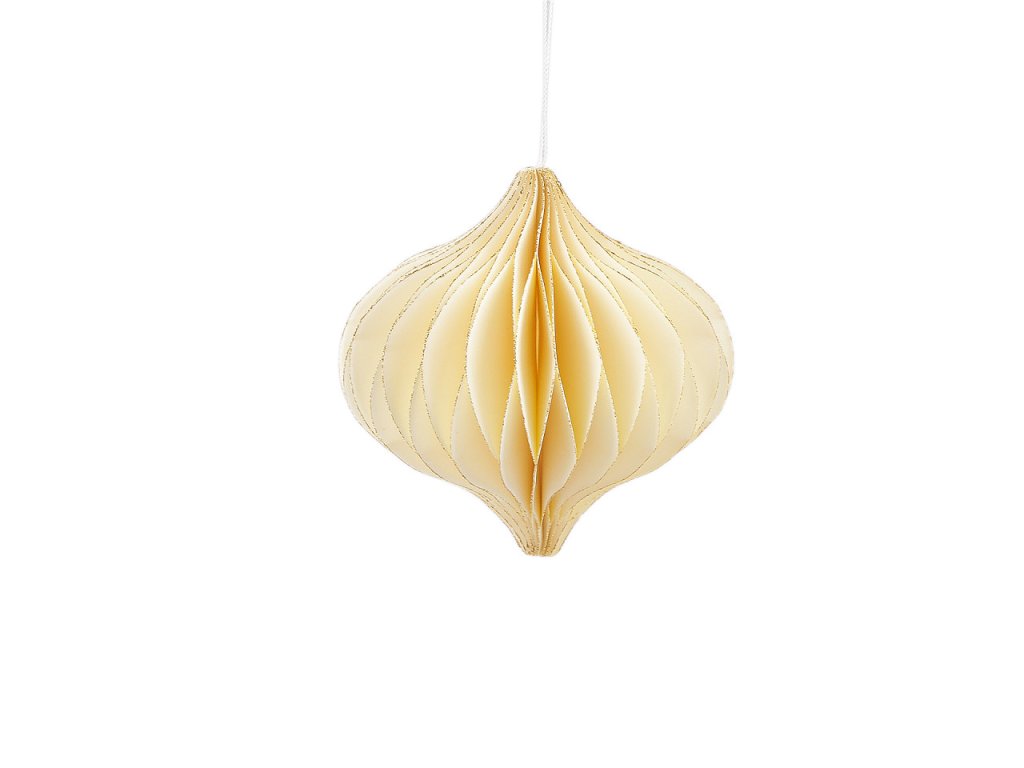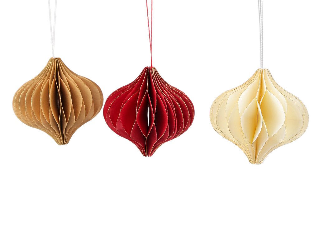 Závěsná dekorace je vyrobená z plástvového papíru, který při roztažení vytváří efekt připomínající včelí plástve. Tento druh papíru má zajímavý 3D efekt. Díky poutku můžete ozdobu pověsit na stromeček, větvičky ve váze nebo na věnce. Tvar skvěle drží díky magnetům, které jsou uvnitř. Na hranách papíru jsou třpytivé glitry. Varianty č. 1, 2, 3 mají průměr 9 cm a výšku 8,5 cm. Varianty č. 4, 5, 6 mají průměr 10 cm a výšku 10 cm.- Průměr: 9; 10 cm