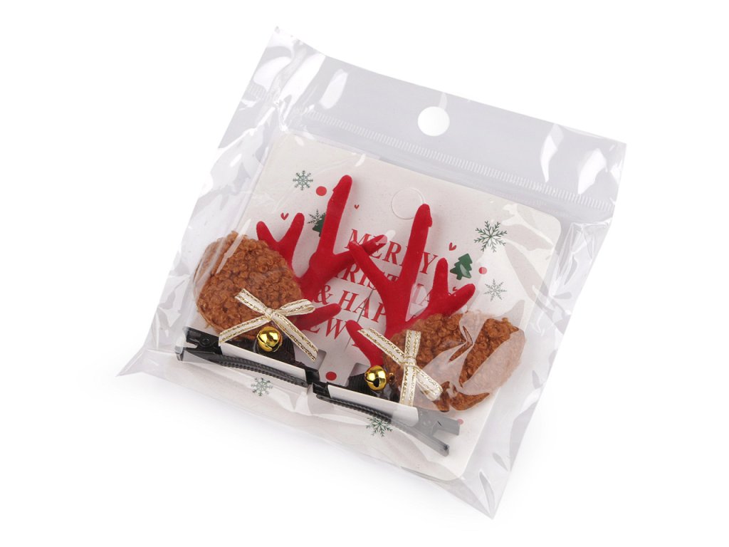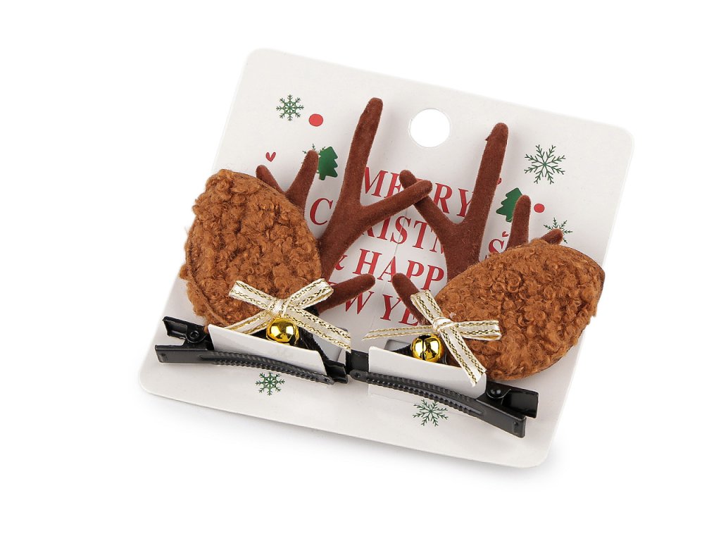 Sponky se sobími parůžky a oušky potěší malé i velké slečny. Malé je ocení k dozdobení roztomilého dětského účesu, pro velké slečny se stanou nepostradatelným doplňkem vánočních večírků. Jsou ozdobené mašličkou s lurexem a mini rolničkou, parůžky jsou pevné, potažené imitací semiše. Spony mají zoubky, v účesu perfektně drží. Nemusí se nosit jen ve vlasech, můžete si je ozdobně připnout na tašku, jako zimní dekoraci apod.- Rozměry: 5,5 x 7 cm