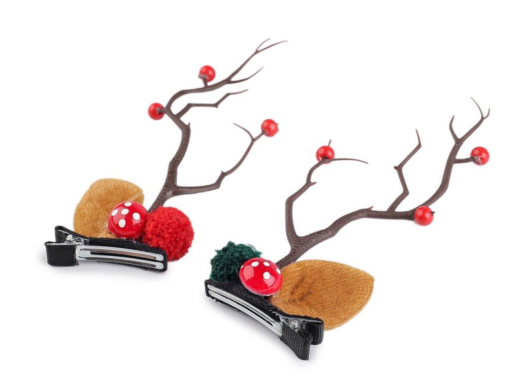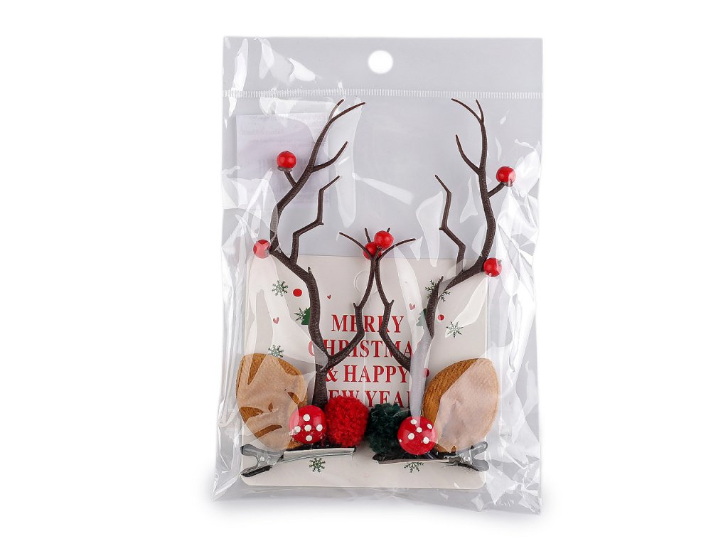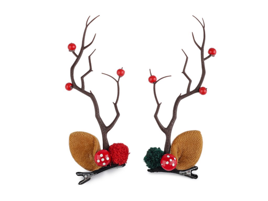 Párty sponky do vlasů ve tvaru parohů s oušky přinesou do vašeho účesu originální a zábavný prvek. Jejich jedinečný design zaručeně upoutá pozornost a přidá vašemu vzhledu špetku hravosti. Jsou skvělé na tematické večírky a karnevaly, jsou perfektní pro doladění kostýmů. Ocení je děti i dospělé ženy. Jsou ozdobené bambulkou, muchomůrkou a šípky v paroží. Parůžky jsou pevné, z poloměkkého plastu. Nemusí se nosit jen ve vlasech, můžete si je ozdobně připnout jako zimní dekoraci.- Rozměry: 6,5 x 15 cm