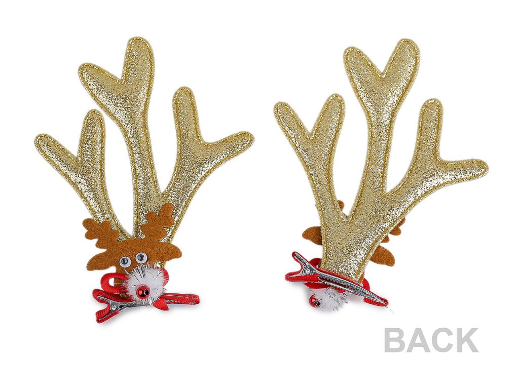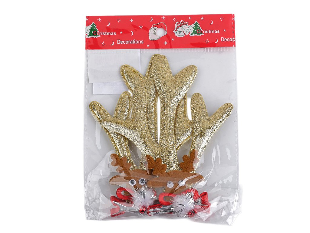 Sponky se sobíky potěší malé i velké slečny. Stanou se nepostradatelným doplňkem vánočních večírků a dalších zimních oslav. Na hlavě najdete pohyblivé plastové oči a zlaté třpytivé parůžky. Na čumáku je ozdoba z mašličky, lurexové bambulky a lesklého korálku. Spony mají zoubky, v účesu perfektně drží. Nemusí se nosit jen ve vlasech, můžete si je ozdobně připnout na tašku, jako zimní dekoraci apod.- Rozměry: 10 x 13 cm