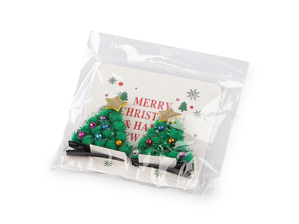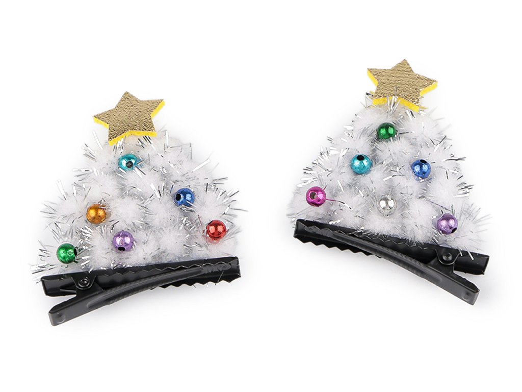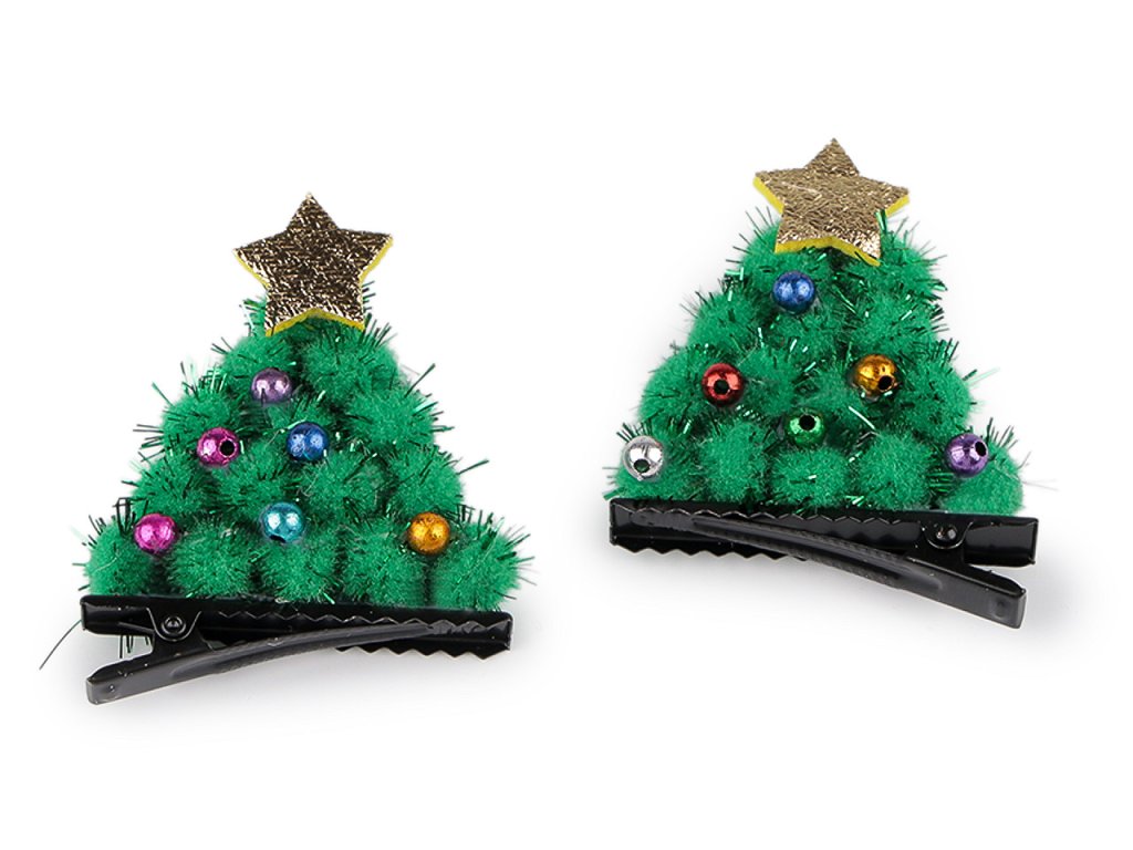 Sponky s vánočním stromečkem potěší malé i velké slečny. Malé je ocení k dozdobení roztomilého dětského účesu, pro velké slečny se stanou nepostradatelným doplňkem vánočních večírků. Jsou ozdobené metalickými korálky a zlatou hvězdou, jsou sestavené z chlupatých bambulek s lurexem. Spony mají zoubky, v účesu perfektně drží. Nemusí se nosit jen ve vlasech, můžete si je ozdobně připnout na tašku, jako zimní dekoraci apod.- Rozměry: 4,5 x 5 cm