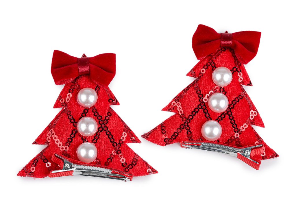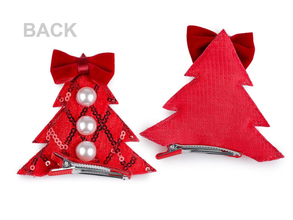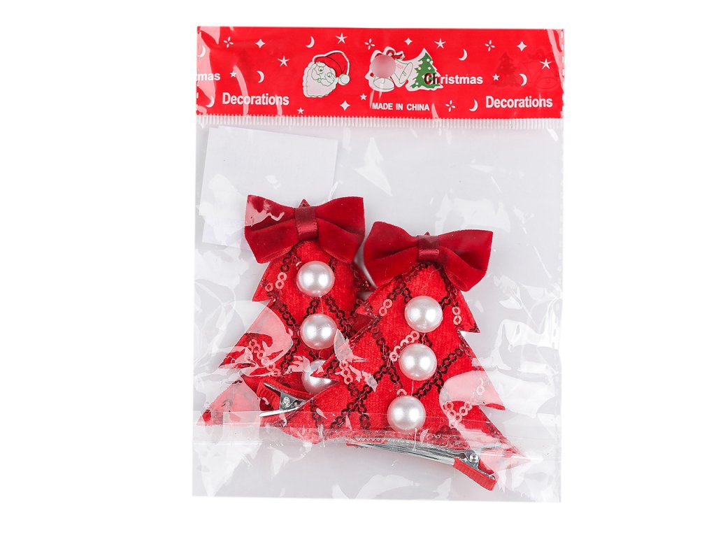 Sponky s vánočním stromečkem potěší malé i velké slečny. Malé je ocení k dozdobení roztomilého dětského účesu, pro velké slečny se stanou nepostradatelným doplňkem vánočních večírků. Jsou ozdobené perlami, flitry a sametovou mašlí, stromečky mají přední stranu semišovou. Spony mají zoubky, v účesu perfektně drží. Nemusí se nosit jen ve vlasech, můžete si je ozdobně připnout na tašku, jako zimní dekoraci apod.- Rozměry: 8 x 8 cm