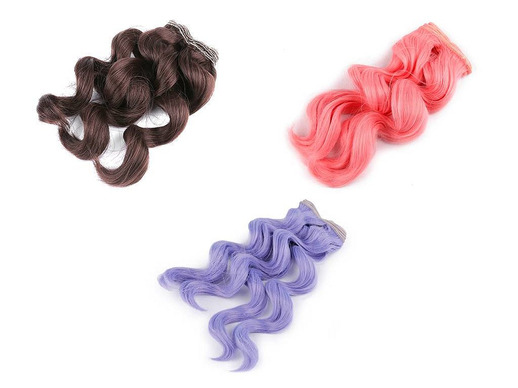 Umělé vlasy pro panenky dotáhnou vaše vyrobené postavičky k dokonalosti. Vlasy jsou vlnité, velmi jemné a příjemné na dotek. Díky pevného horního lemu se dají jednoduše přišít či přilepit. Lem je měkký, dá se dobře tvarovat podle potřeby. Vlasy můžete nůžkami zkrátit na potřebnou délku. Výška vlasů se pohybuje v rozmezí 18 - 25 cm, je to způsobené různým zvlněním loken.- Výška: 18 - 25 cm