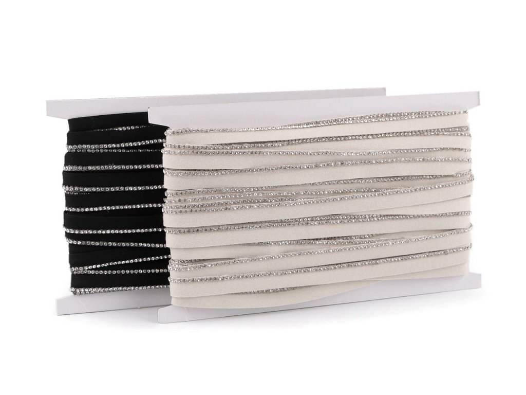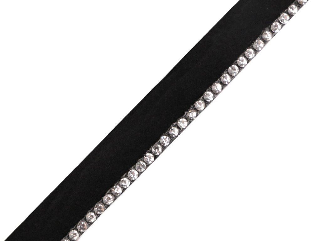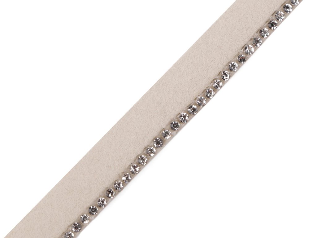 Paspulka s broušenými kamínky dá vašemu oděvu nádech elegance. Využijete ji k ozdobení lemů či švů. Je jednostranná, kamínky jsou nalepené v řadě na pevné stuze se semišovým povrchem. Při každém pohybu se nádherně třpytí. Paspulka vynikne na společenských a plesových šatech, halenkách, sukních, kostýmech i módních doplňcích, jako jsou slavnostní psaníčka, obuv apod.- Šíře: 10 mm