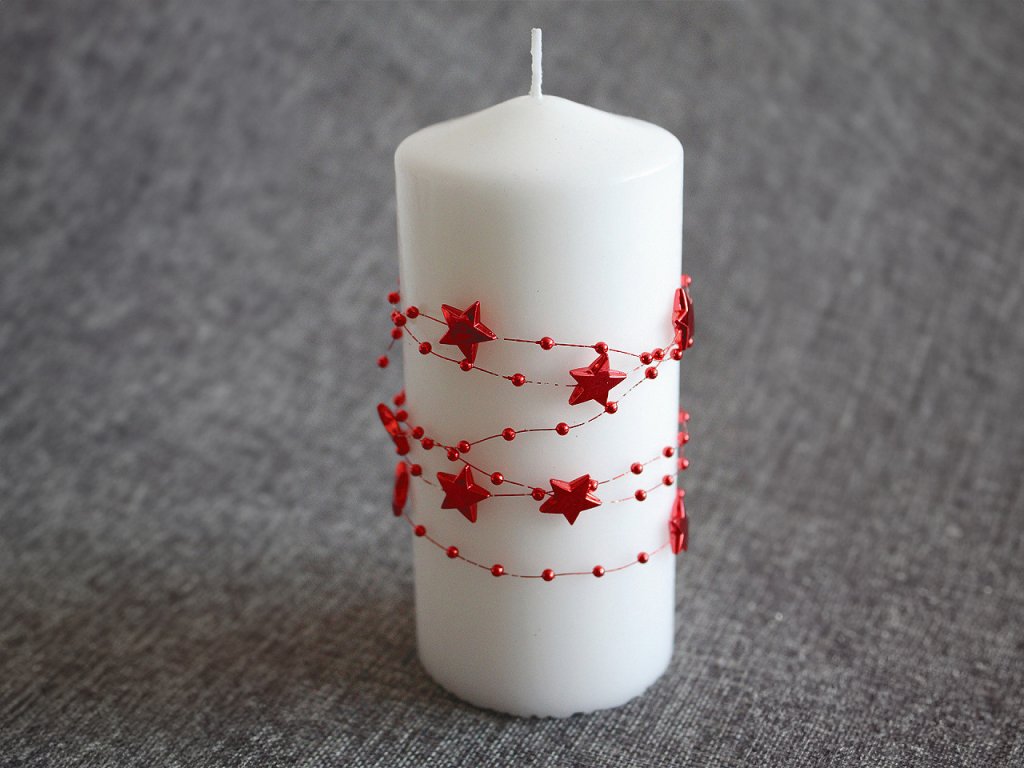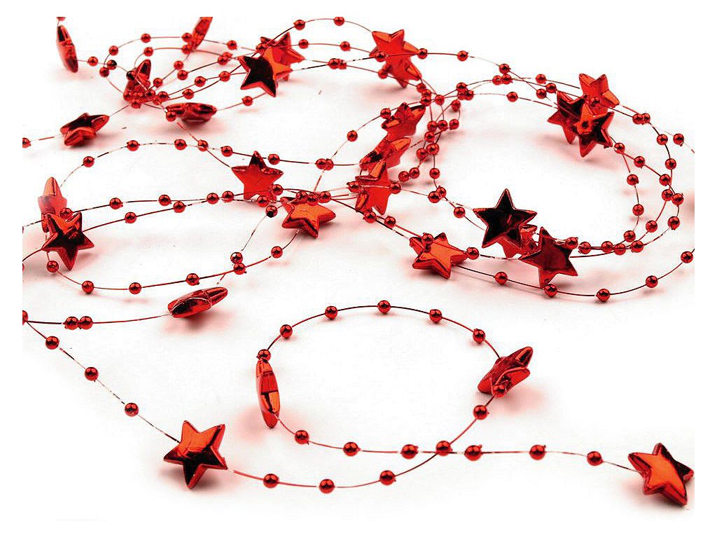 Dekorační perličky s hvězdičkami na silonu využijete jako ozdobný řetěz na věnce, kytice, slavnostní tabule, atd.- Průměr hvězdy: cca 15 mm