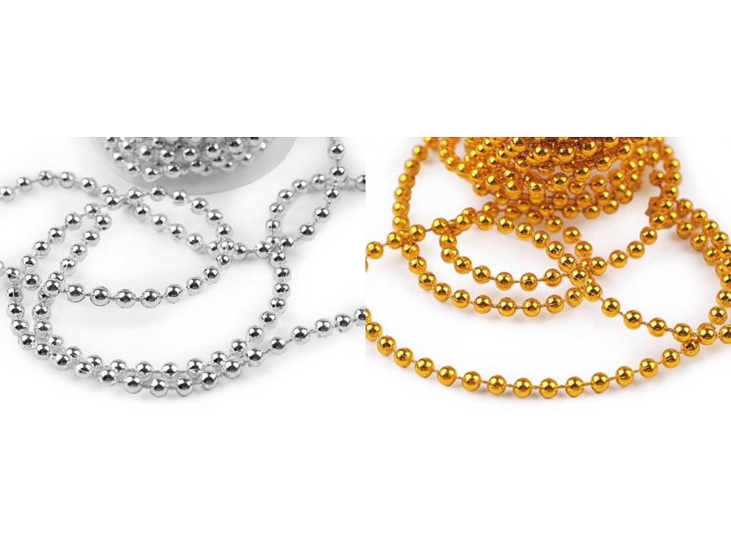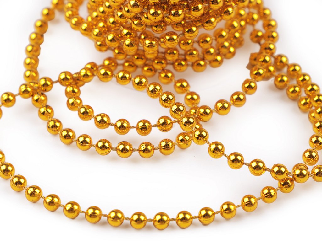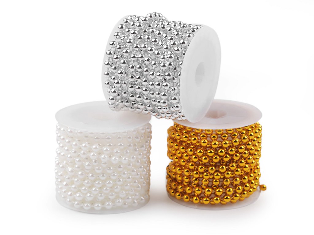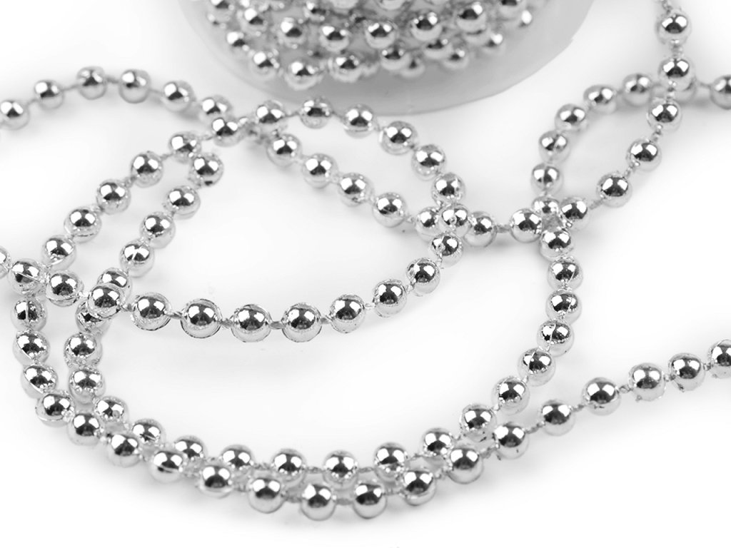 Šňůru plastových perel využijete na vánoční i svatební aranžmá. Je vhodná na ozdobení květinových vazeb, věnců, židlí nebo jako řetěz na stromeček. Kuličky se dají snadno oddělit nůžkami, řetěz si můžete sami zkrátit.- Průměr: 4 mm