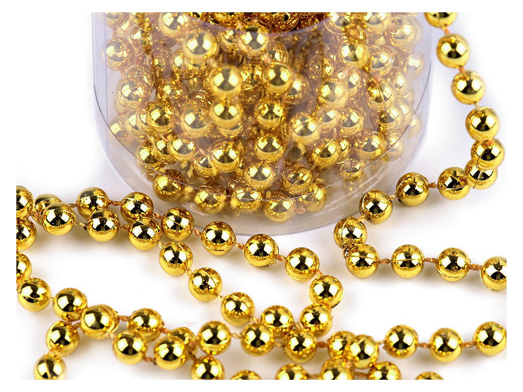 Perličkové řetězy jsou velkým hitem mezi dekoracemi. Můžete je používat během celého roku, nejen o Vánocích. Ozdobte si jím dekorace, svatební tabuli či slavnostně vyzdobený stůl. Kuličky jsou vyrobeny z plastu a dají se snadno oddělit nůžkami, pokud si řetěz budete chtít zkrátit.- Průměr: 6 mm