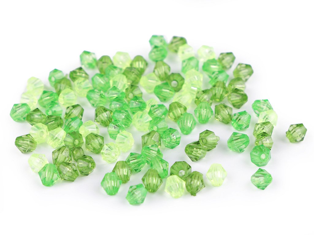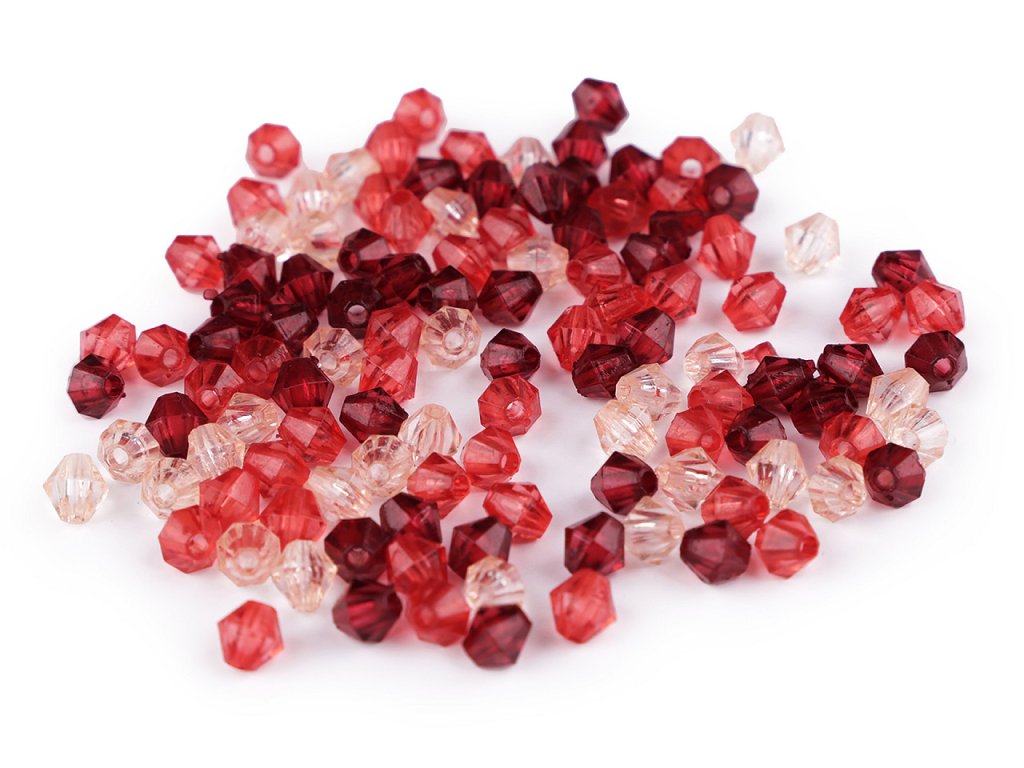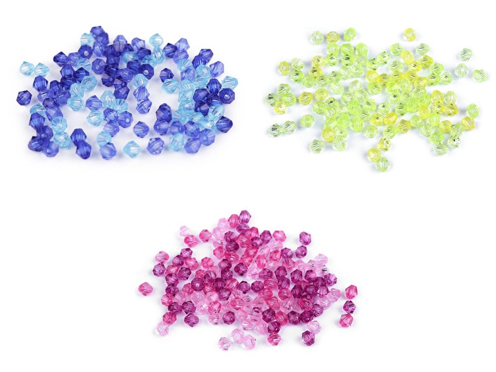 Barevně sladěný mix transparentních korálků z pevného plastu, broušených do tvaru sluníčka, můžete použít k různým korálkovým technikám. Úchvatné budou i v korálkových závěsech. Jejich velikou výhodou je lehká hmotnost. Balení 25 g obsahuje cca 350 ks korálků. Z důvodu způsobu zpracování plastu mohou být u některých korálků konce a hrany nezačištěné.- Rozměry: 6 x 6 mm