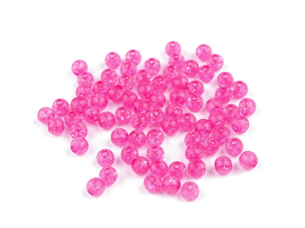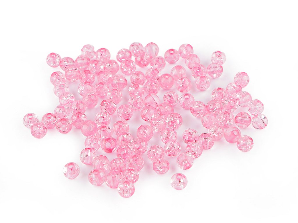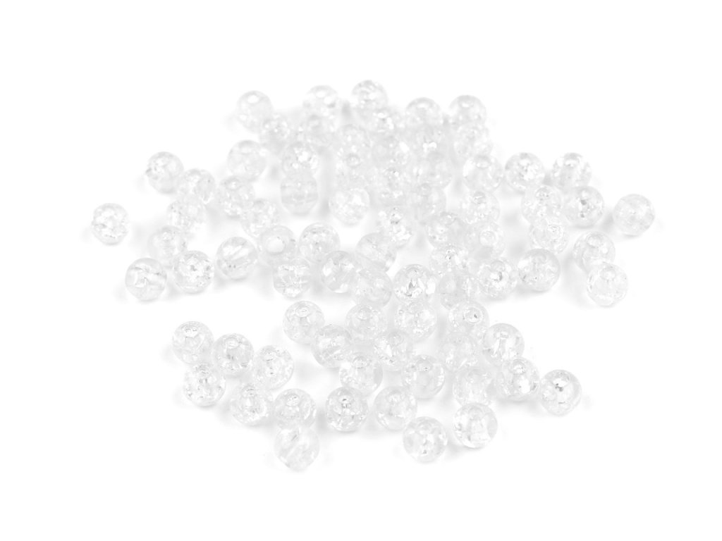 Plastové korálky s efektem kraklé - prasklin lidově nazývaných práskačky, jsou velice variabilní. Mají všechny výhody plastových korálků - jsou lehoučké, mají dostatečně velký průvlek, aby jimi prošly i stužky nebo voskované šňůry. Našim fotografkám se fotografie velmi povedly, ale věřte, že ve skutečnosti jsou korálky ještě zajímavější. Vzhledem ke způsobu zpracování plastů upozorňujeme, že na některých korálcích mohou být na pohled či na dotek patrné zbytky spojů. V balení 30 g je cca 270 ks korálků.- Průměr: 6 mm