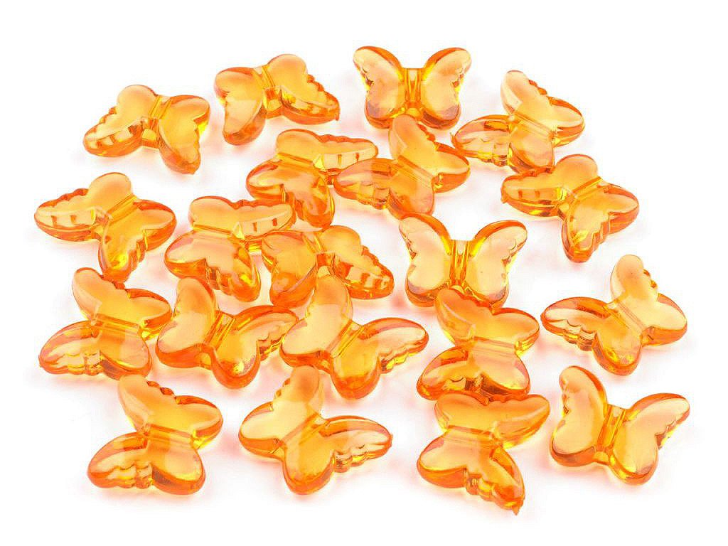 Transparentní plastový korálek ve tvaru motýla je vhodný pro výrobu dekorací a bižuterie.- Rozměry ozdoby: 15 x 18 mm