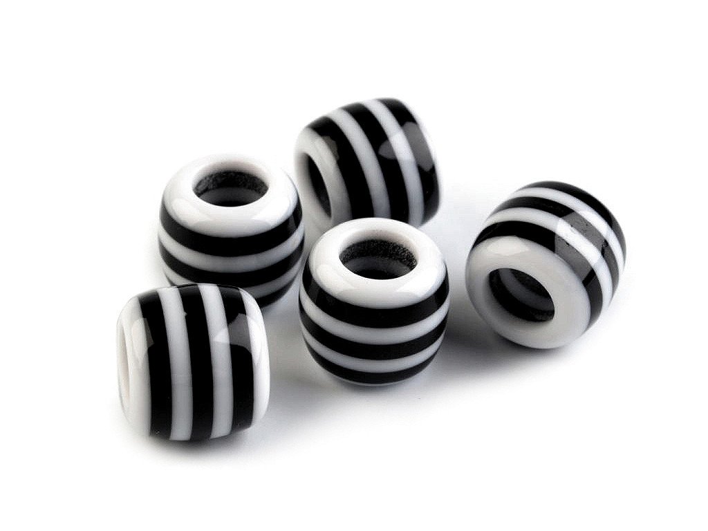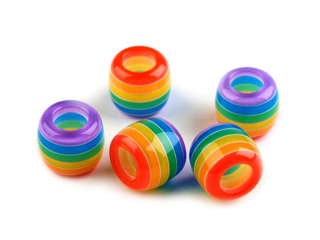 Plastové korálky s proužkem s velkým průvlekem 10x12 mm