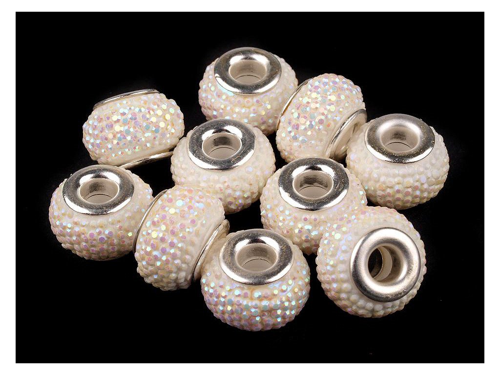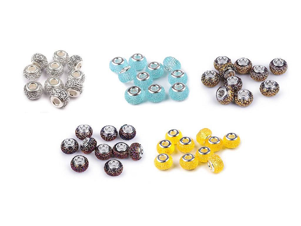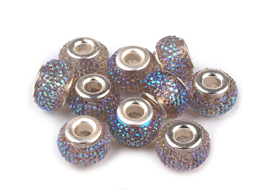 Transparentní korálky s velkým průvlekem mají díky drobných plošek výrazný lesk. Navíc mají povrch s AB efektem, jenž způsobuje vysoký duhový třpyt korálku. Jejich velikou výhodou je lehkost použitého materiálu. Průvlek je začištěný kovovou průchodkou. Náš Tip: zkuste je navléci na modistickou dutinku. Vytvoříte si šperk podle vlastního gusta. Korálky využijete nejen k výrobě bižuterie, ale i ke zdobení oděvů, tašek nebo plavek. Korálky jsou vhodné pouze pro šetrné ruční praní. Barvy korálků v mixu se mohou lišit, fotografie je pouze ilustrační.- Průměr: 14 mm