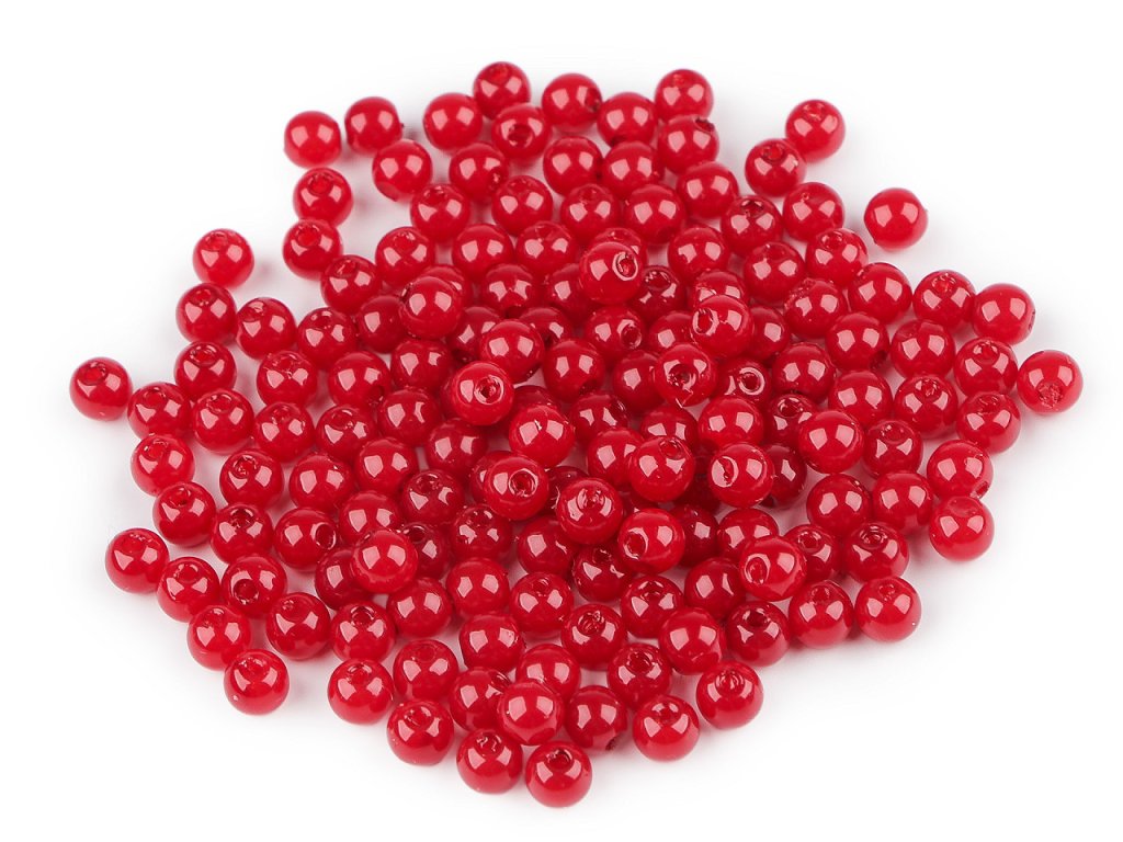 Osvědčené plastové korálky s blýskavým leskem, na jaký jste byli zvyklí jen u skleněných voskovaných perlí. Jejich velikou výhodou je lehká hmotnost, nemusíte se bát použít je do složitějších náhrdelníků, hodí se i pro dlouhé návleky. Vašim šperkům dodají slavnostní vzhled. V balení 20 g je cca 120 ks korálků, v balení 500 g je cca 4500 ks korálků. Korálky č. F40 - červené tmavé nemají perleťový lesk.- Průměr: 6 mm